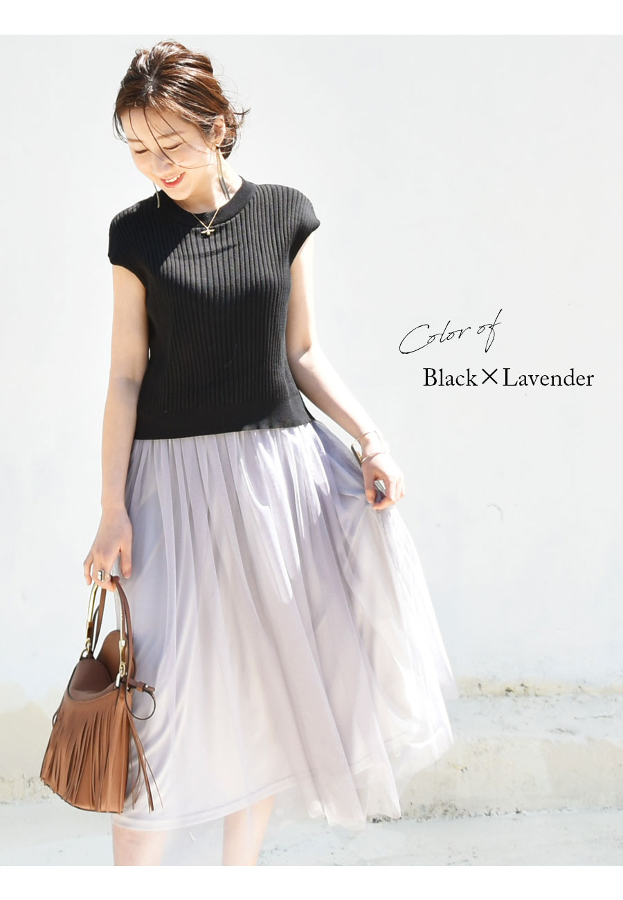 オトナ女子の素敵で愛らしいリブニット×チュールが美しいドッキングワンピースです。