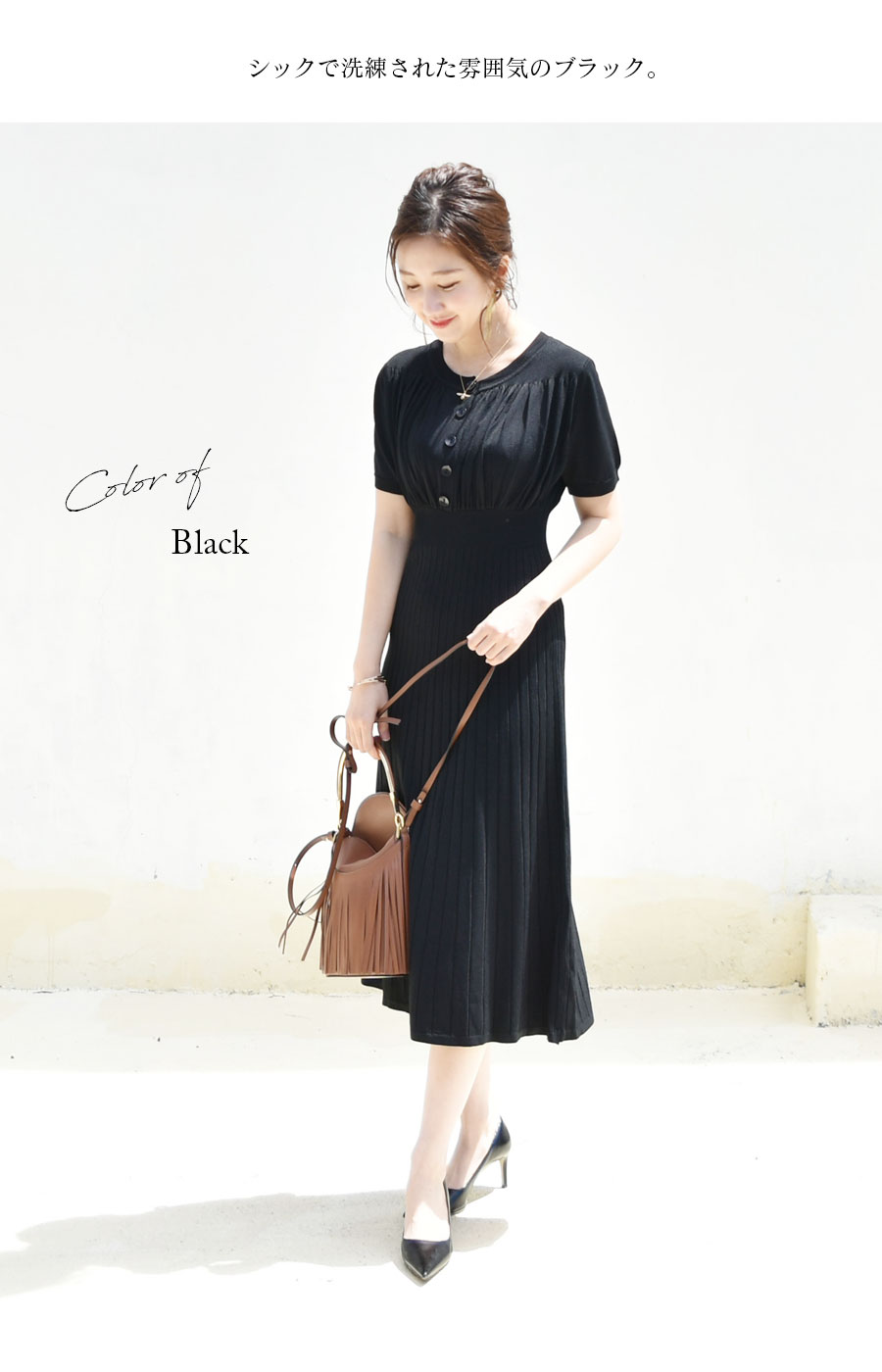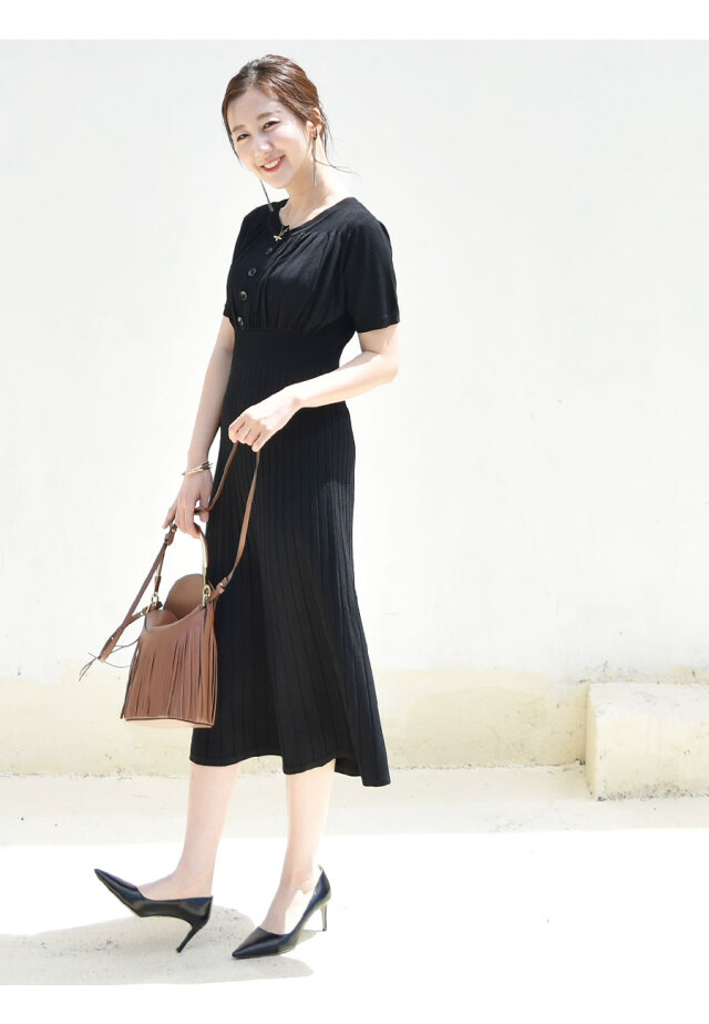 また、ウエスト〜リブの入ったフレアースカートへのメリハリある美しいラインが、びっくりするくらい華奢見えするシルエットを作ってくれます。