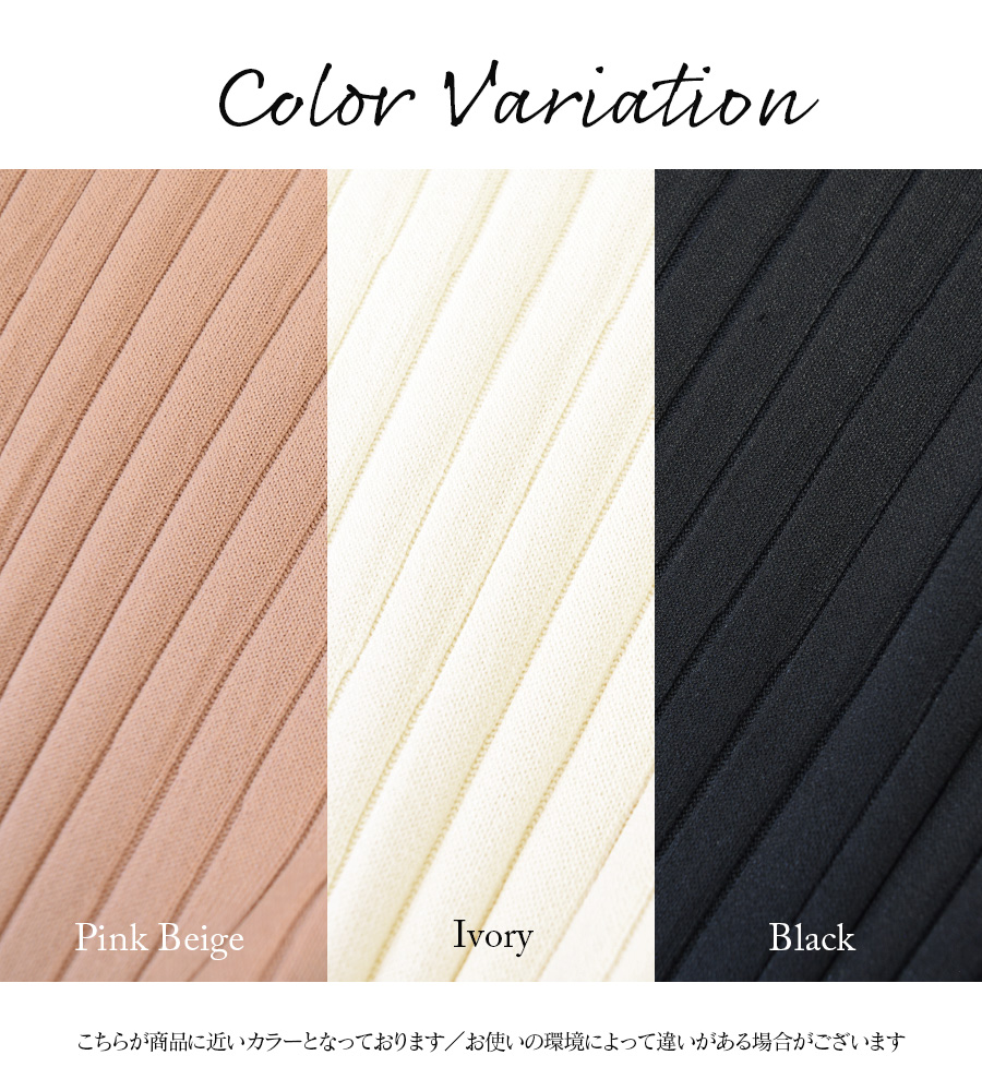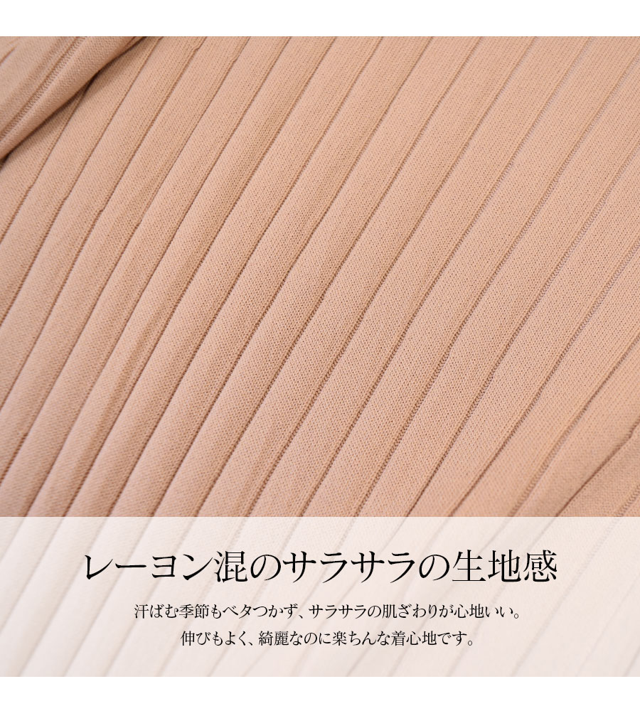 胸下からのハイウエスト部分にはリブを使い、楽ちんな着心地なのにウエストをキュっと細くみせてくれます。