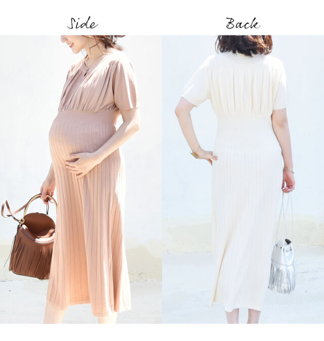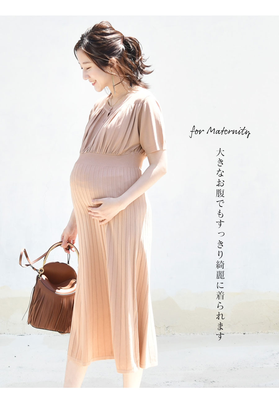 商品カテゴリ:授乳服 授乳 マタニティ マタニティー マタニティ服 妊婦 妊婦服 妊娠 出産 産前産後 出産準備 ニット リブ ワンピース ワンピ ロング レディース 伸びる 大きいサイズ 半袖 春 夏 きれいめ フォーマル エレガント フレアー お宮参り お食い初め お呼ばれ 結婚式 Milk tea ミルクティ ミルクティー