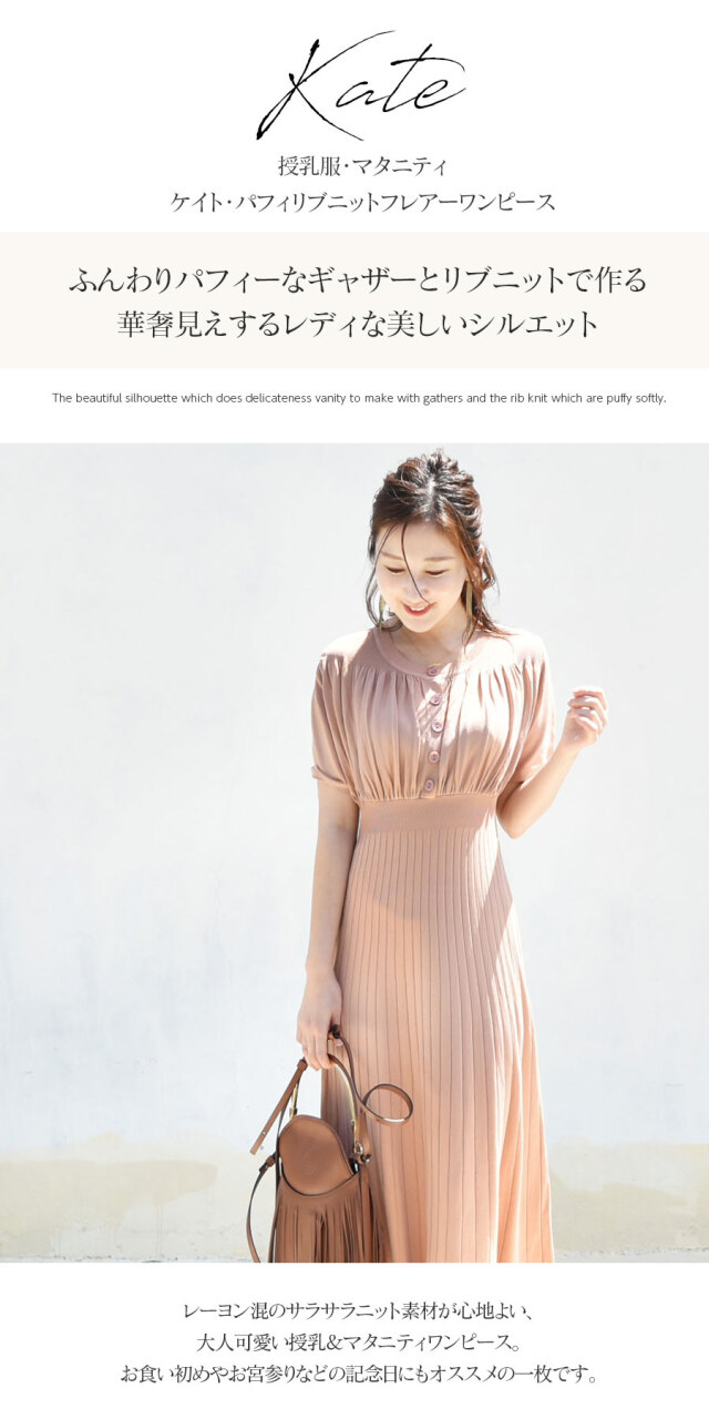 | 製品名: | <授乳服・マタニティ>ケイト・パフィリブニットフレアーワンピース(ボタンタイプ) |