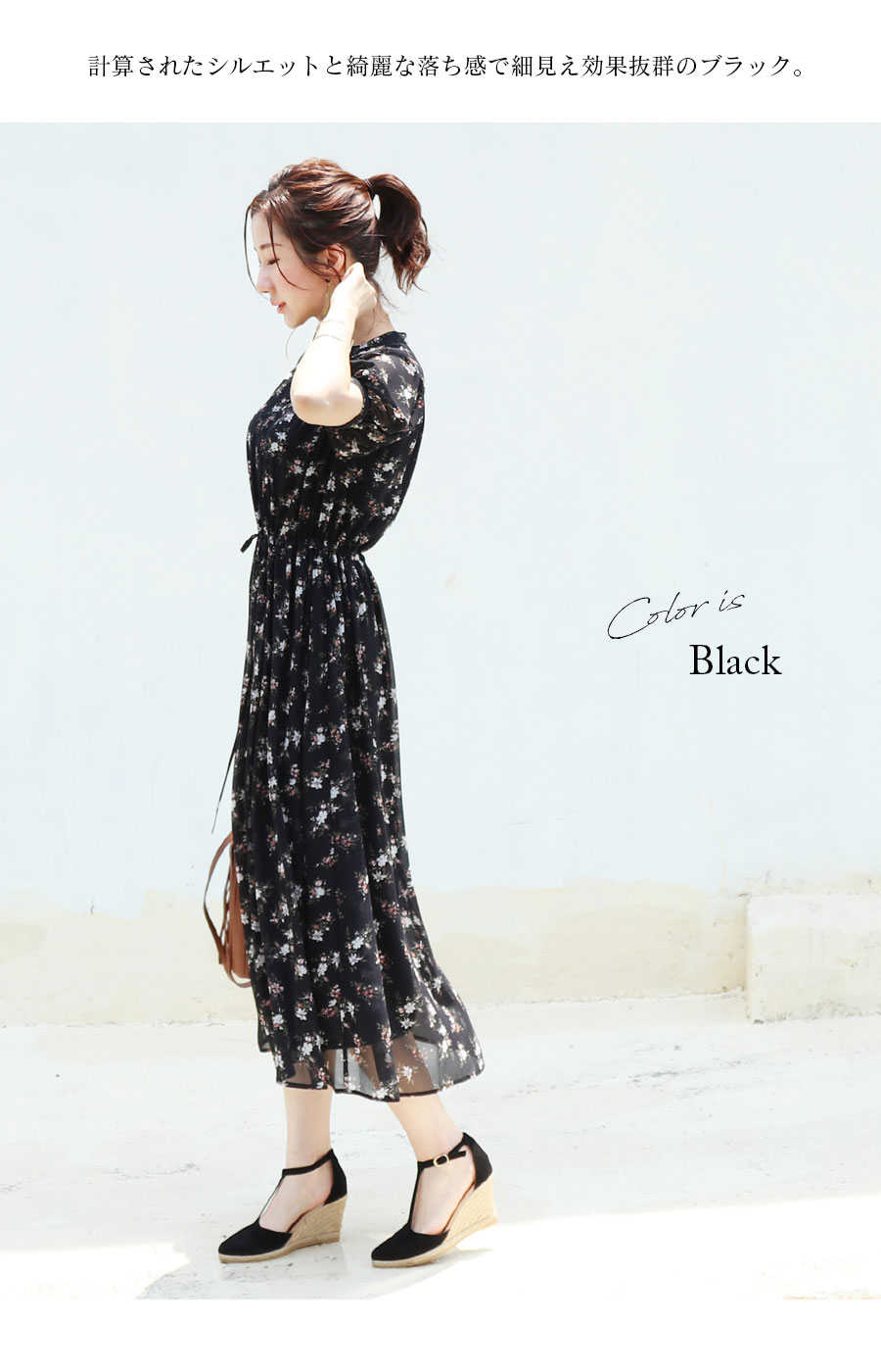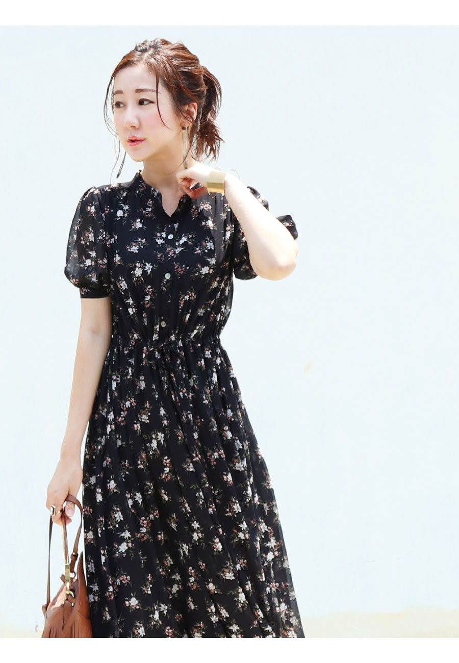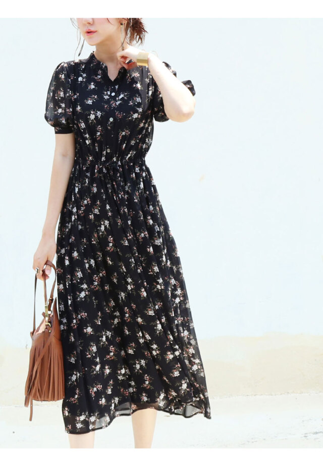 たくさんある花柄素材からから繊細で大人可愛いシフォン使いのふんわり生地を選んで作ったロマンティックなワンピースです。