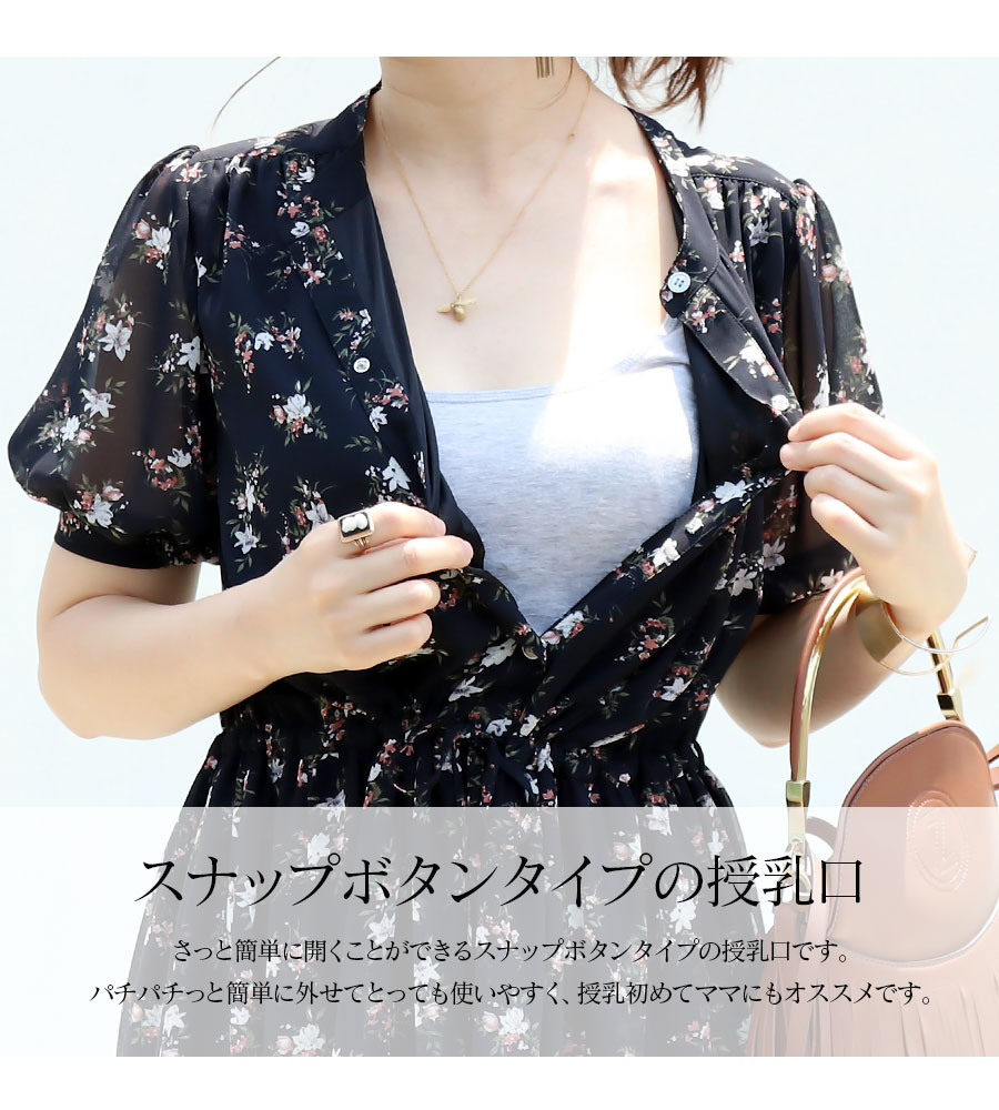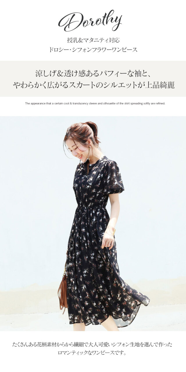 | 製品名: | <授乳服・マタニティ>ドロシー・シフォンフラワーワンピース(ボタンタイプ) |