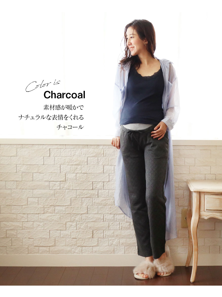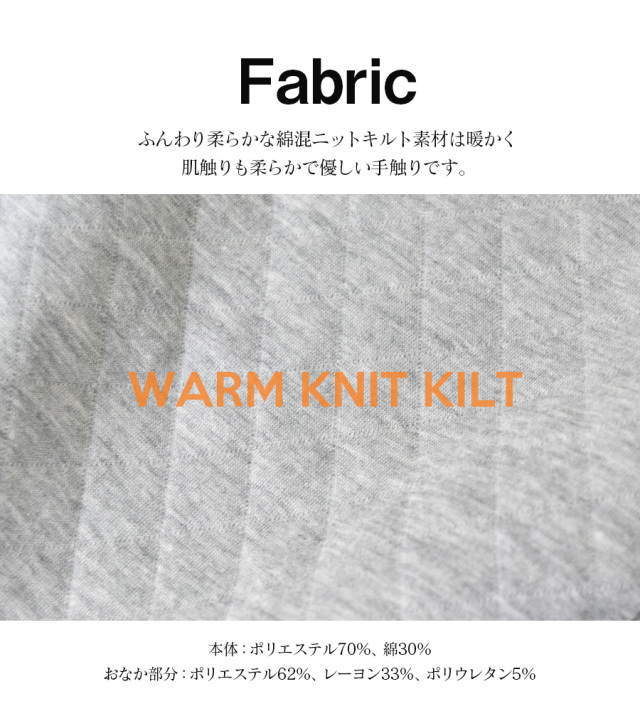 ふんわり柔らかなニットキルティング素材で暖かさはキープしつつ、もこもこしすぎないすっきりとしたラインで穿けるパンツです。
