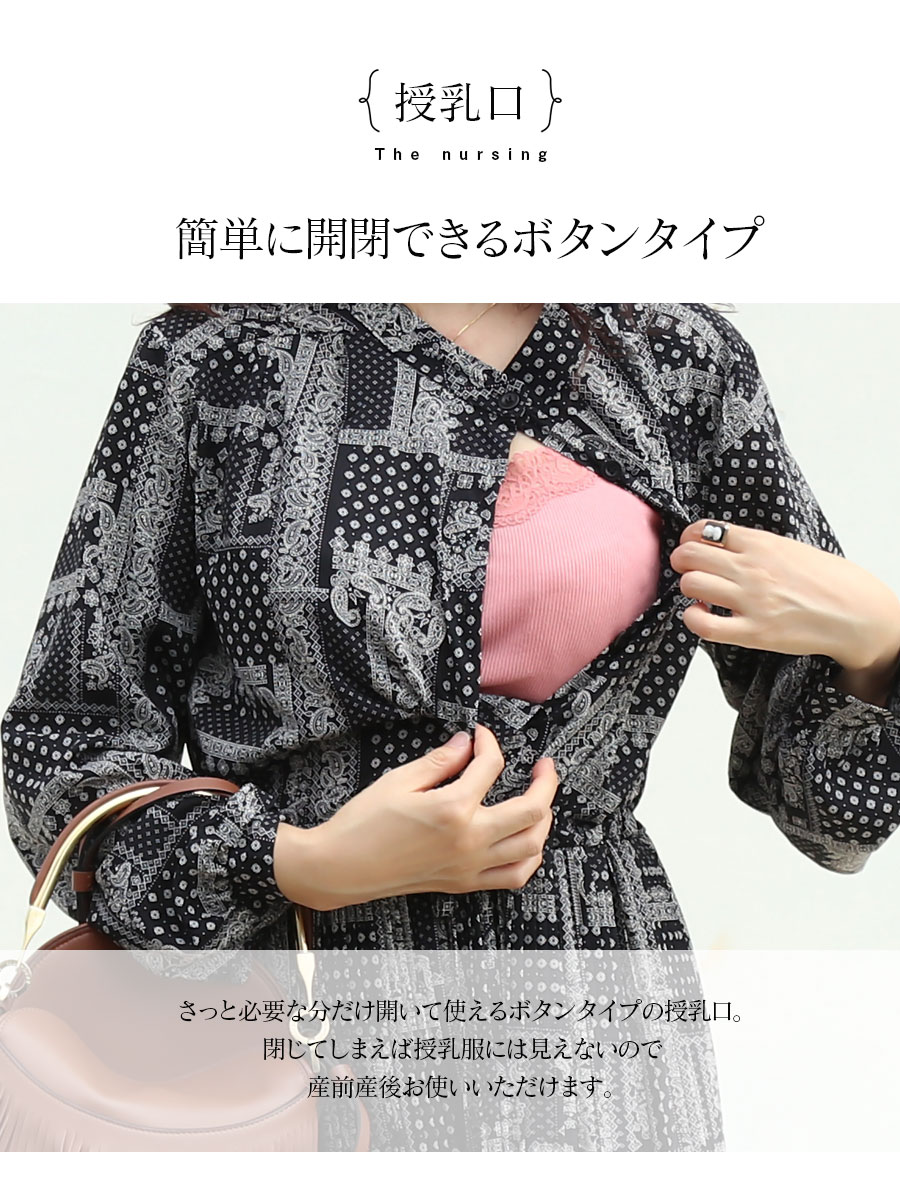 授乳服 授乳 妊婦 妊婦服 妊娠 出産 産前 産後 出産準備 妊娠初期 妊娠中期 妊娠後期 ワンピース ワンピ シフォン レトロ ヴィンテージ チュニック プリーツスカート プリーツ ボタン授乳口 簡単授乳 フォーマル シンプル レディース お宮参り お食い初め お呼ばれ 保護者会 大きいサイズ ママ ママ服 春 秋 冬 Milk tea ミルクティー ミルクティ