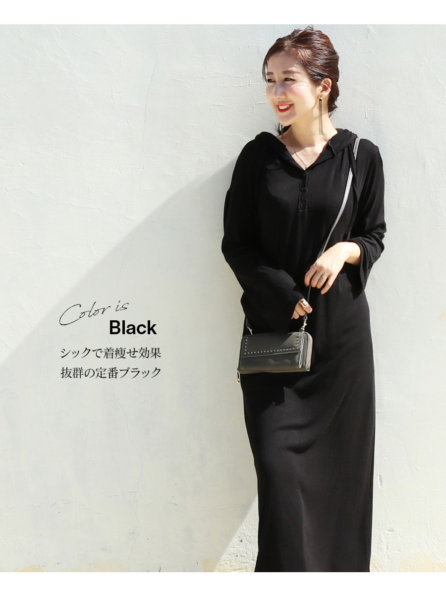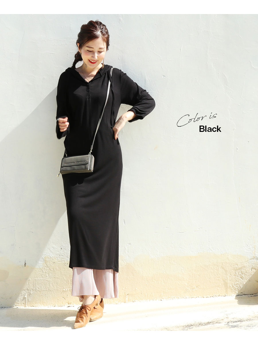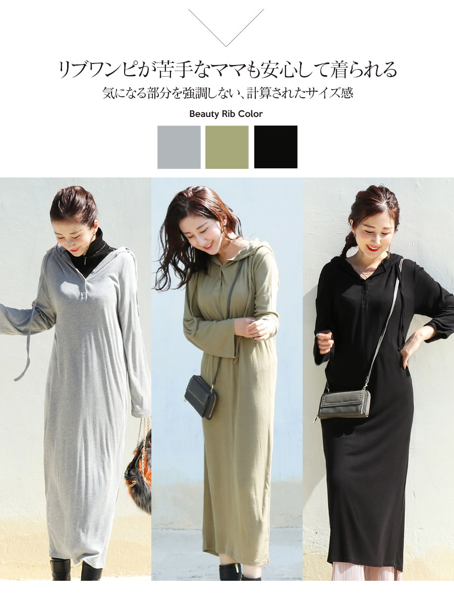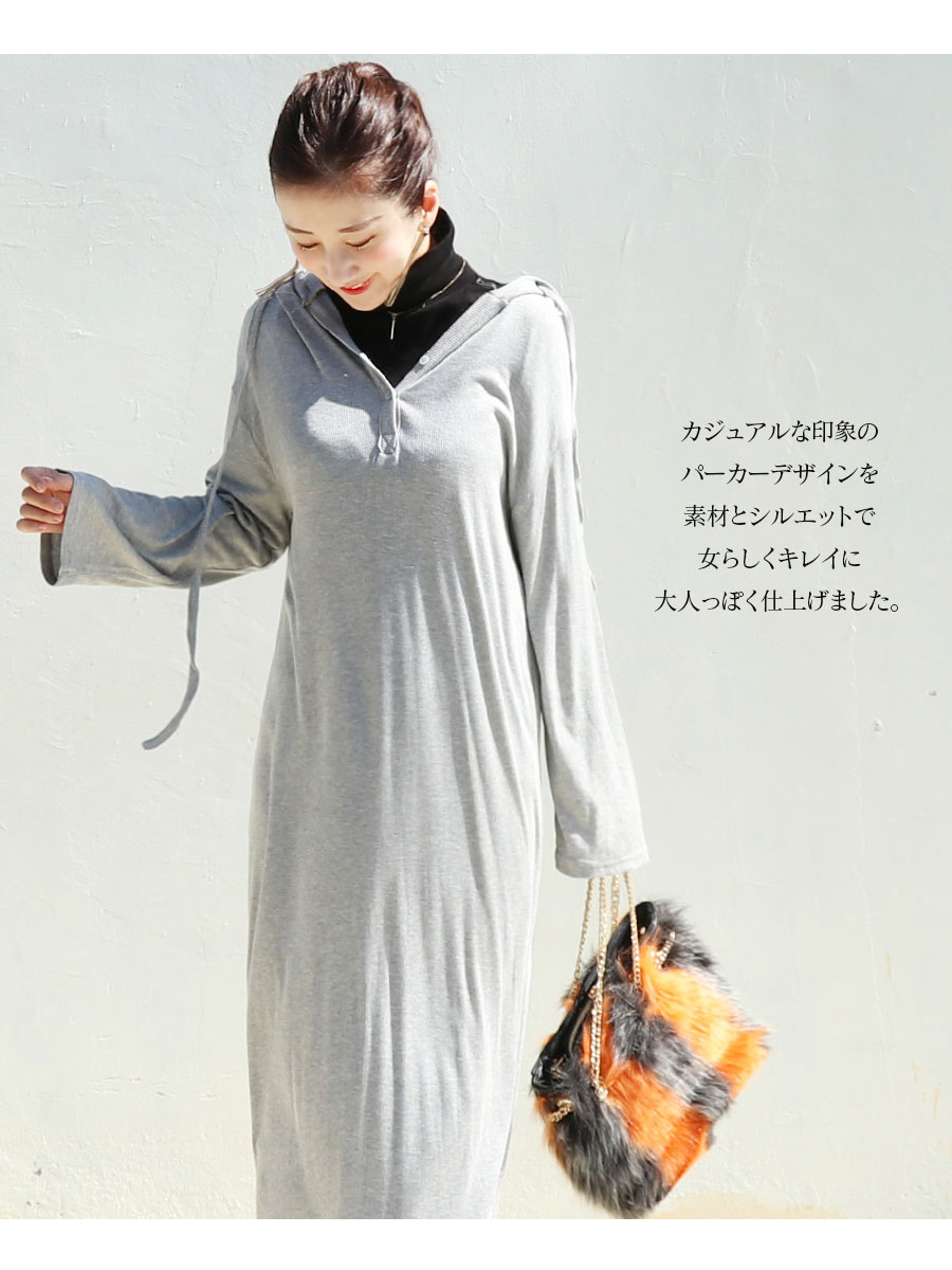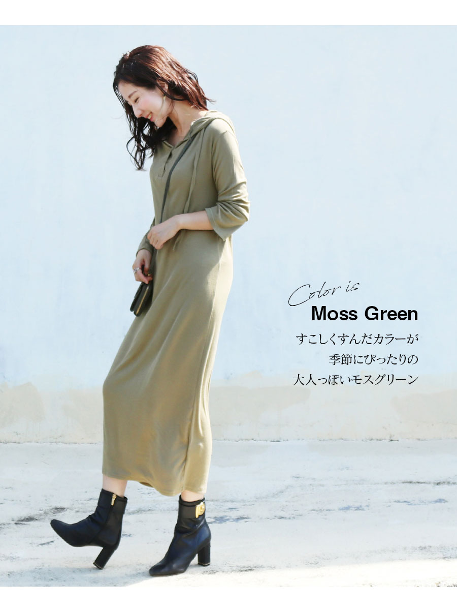 さらっと着るだけで、すっきりIラインシルエットが叶う、パーカーリブワンピです。