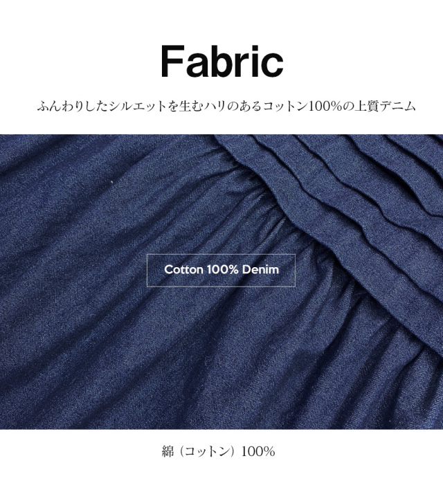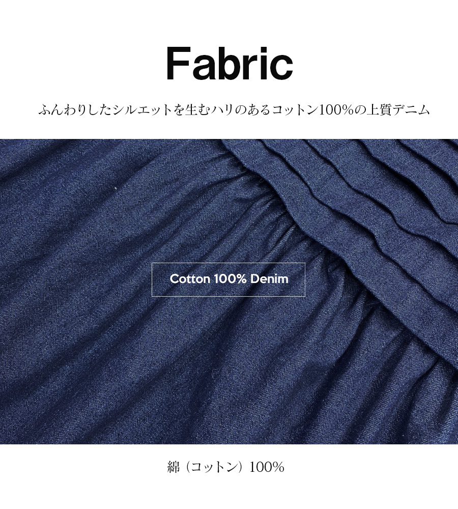 ハリのある上質なデニム地がふんわりした広がりを作ってくれます。