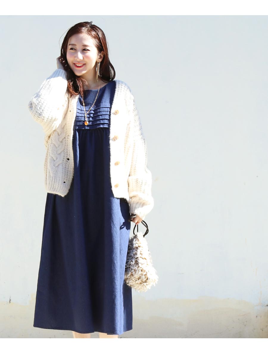 程よい厚みとインディゴカラーで使いやすい、ふんわりシルエットの“大人かわいいデニム授乳ワンピース”です。