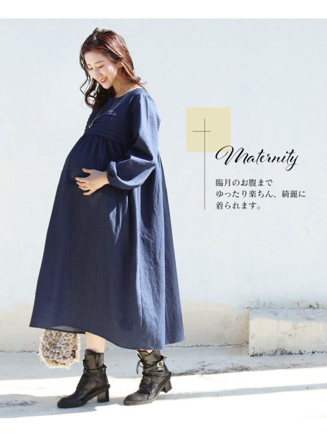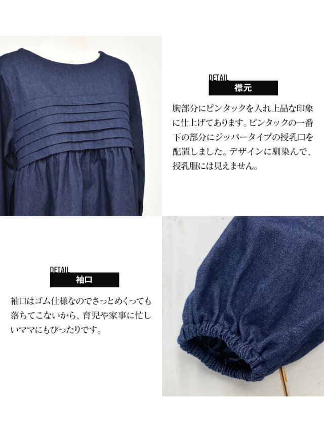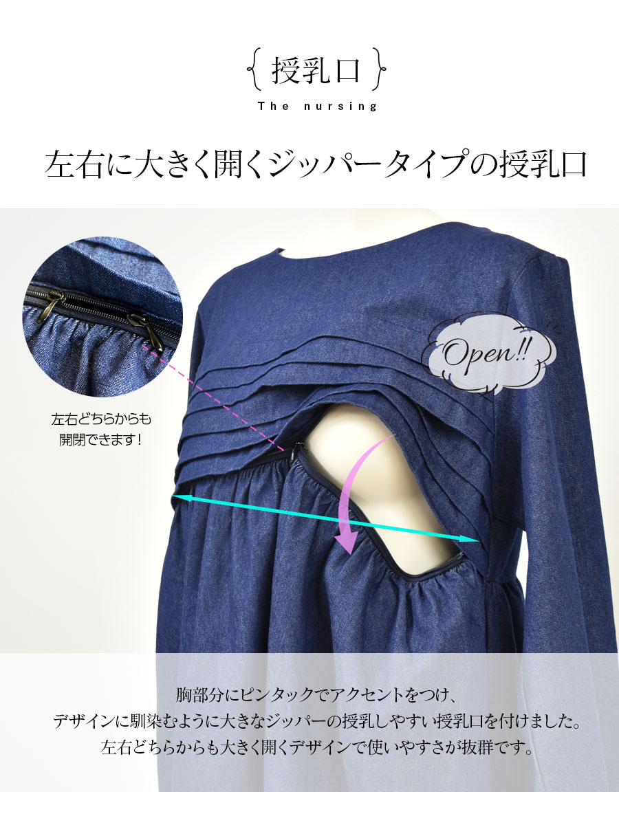 授乳服 授乳 マタニティ服 マタニティ 妊婦服 妊婦 妊娠 出産 産前産後 授乳期 妊娠初期 妊娠中期 妊娠後期 出産準備 ワンピース ワンピ チュニック デニム デニムワンピース Denim ジーンズ インディゴ ピンタック 大きいサイズ レディース 春 秋 冬 オールシーズン Milk tea ミルクティー ミルクティ