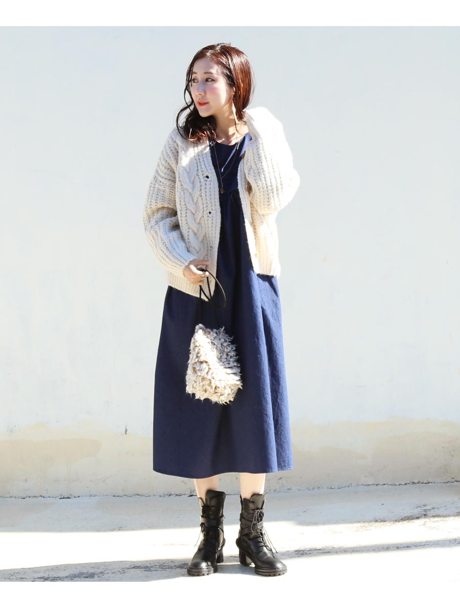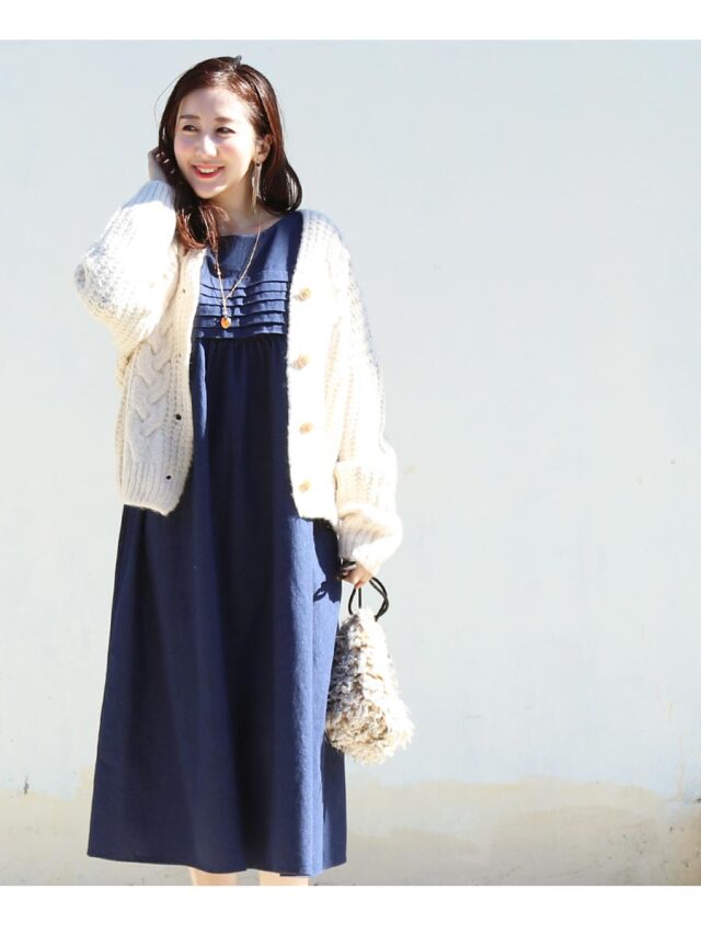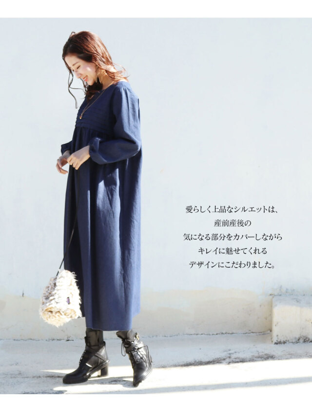 晩秋から冬〜春先まで着られ、ゆったりしたサイズ感のワンピースなので大きなお腹のマタニティはもちろん、産前産後もずっとお使いいただけます。