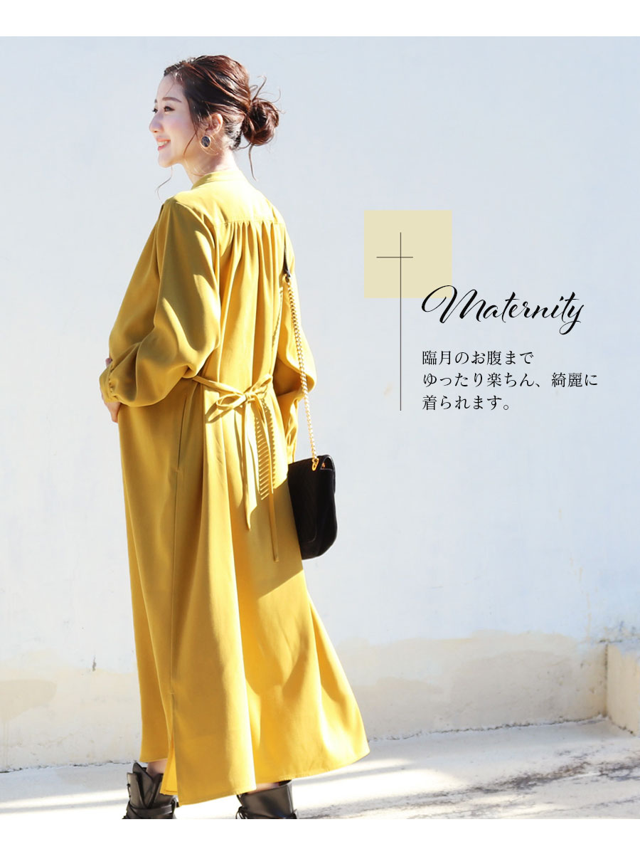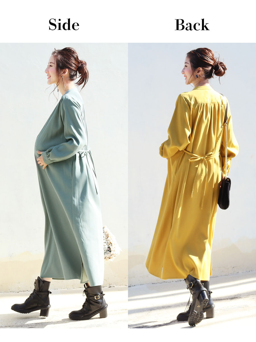 上品リッチなスエード調の生地をたっぷり使い、シンプルなデザインの中にフェミニンで上品なディテールを施した、一枚で様になるマタニティ対応授乳ギャザーワンピースです。