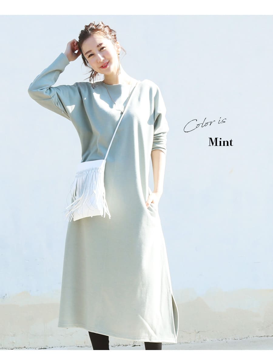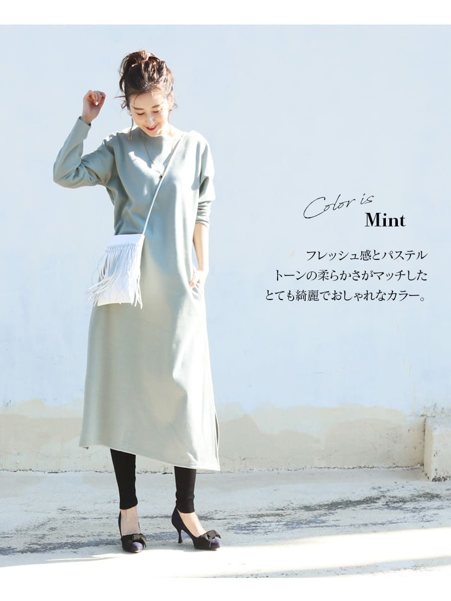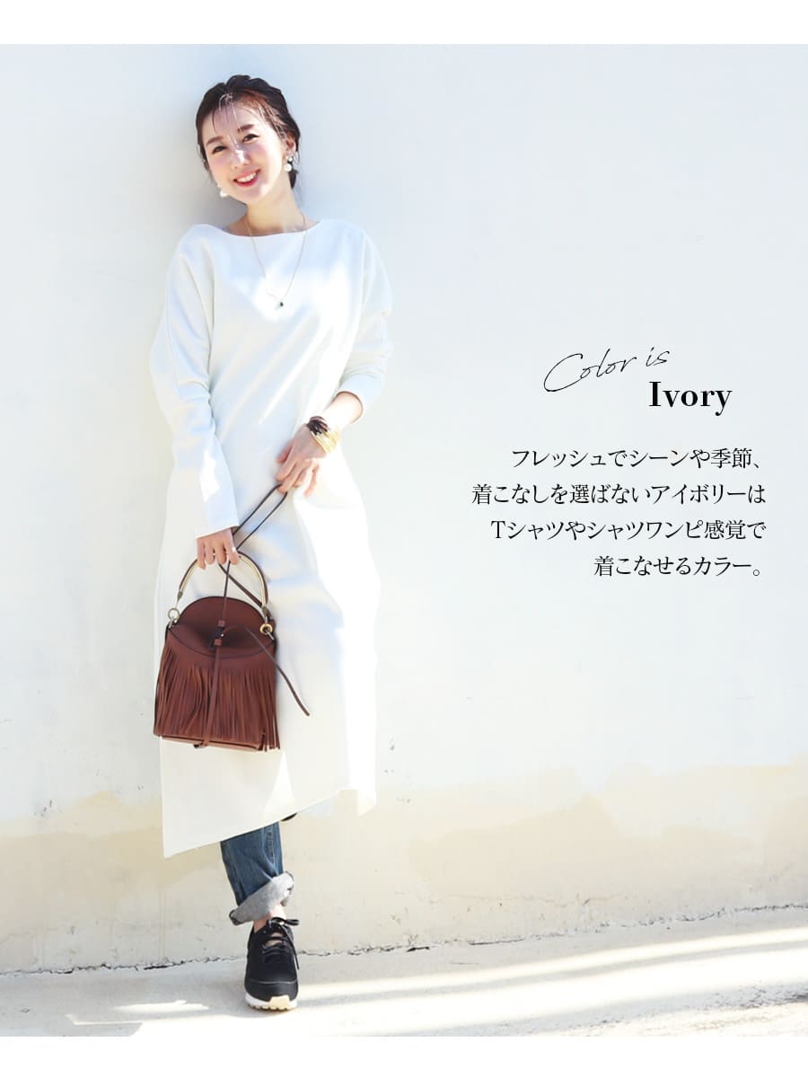 肩のラインを落としたゆるっとしたシルエットで、抜け感のある着こなしが叶うワンピースです。