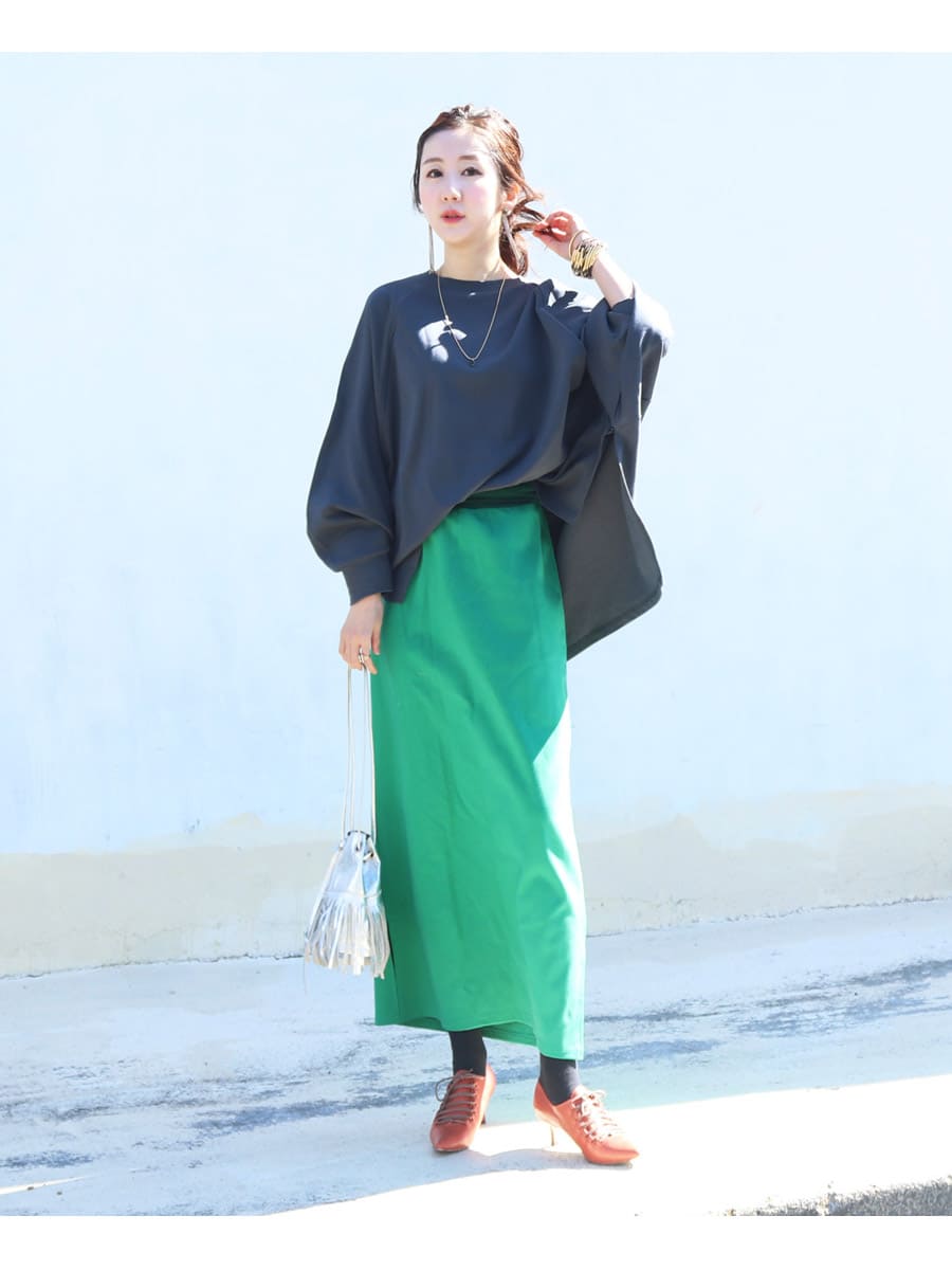 肩周りにゆとりのあるドルマンデザイン&ドロップショルダーが抜け感を出し、しっかりした身幅(約150cm)のある綺麗なシルエットでしっかり体型カバー。