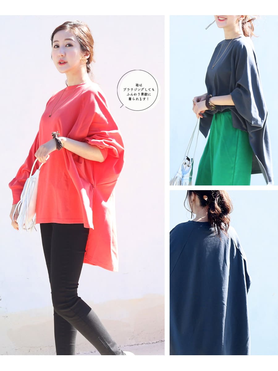 ゆるっとした大人女子のこなれシルエットが抜群に可愛い!授乳ケープみたいに使えるドルマンカットソーです。