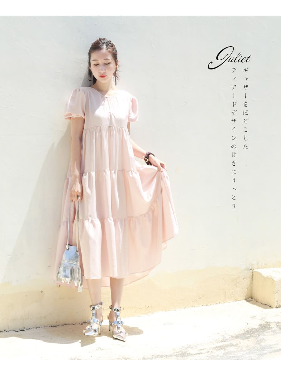 乙女心を鷲掴み!ギャザーをほどこしたティアードデザインの甘さにうっとり…。