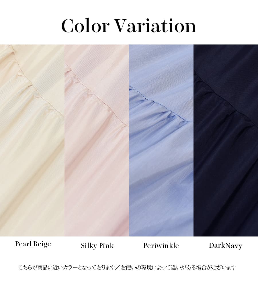 上品でリッチな光沢感のある素材のプリーツを贅沢に3段重ねて、思い切り華やかさをプラス。動くたびに動く度にドラマティックな表情をくれます。