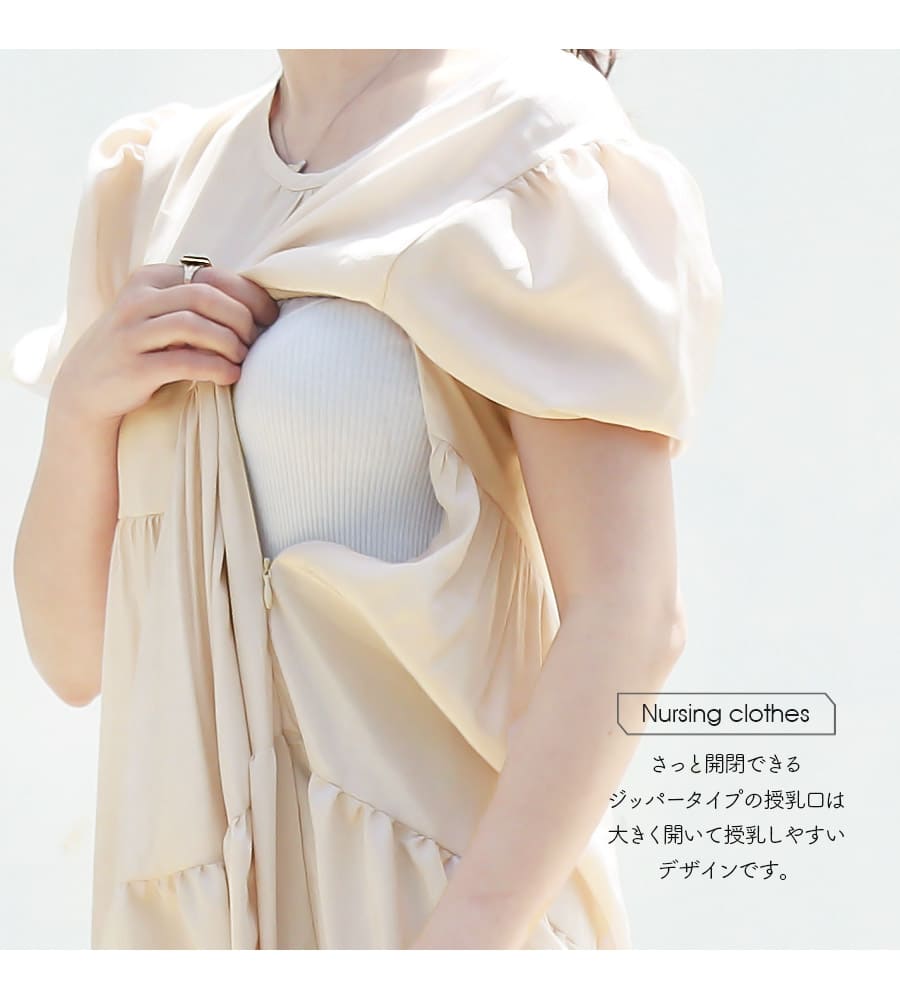 授乳服 授乳 マタニティ服 マタニティ 妊婦服 妊婦 妊娠 出産 産前産後 授乳期 妊娠初期 妊娠中期 妊娠後期 出産準備 ワンピース ワンピ ドレス ティアード お宮参り お食い初め 戌の日参り 結婚式 保護者会 お呼ばれ フォーマル きれいめ 大きいサイズ レディース 半袖 春 夏 Milk tea ミルクティー ミルクティ