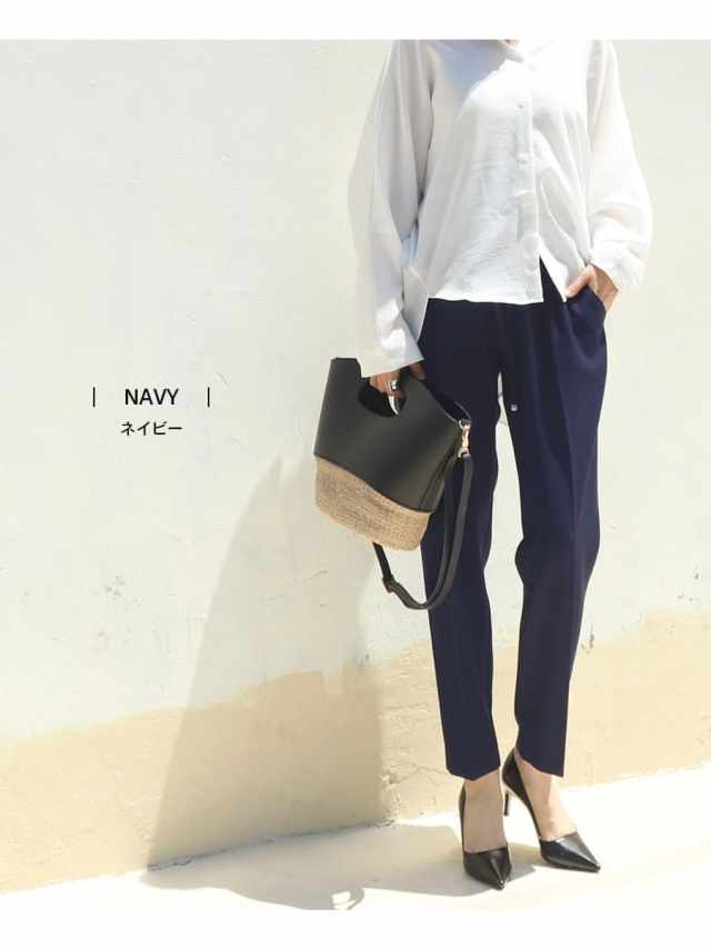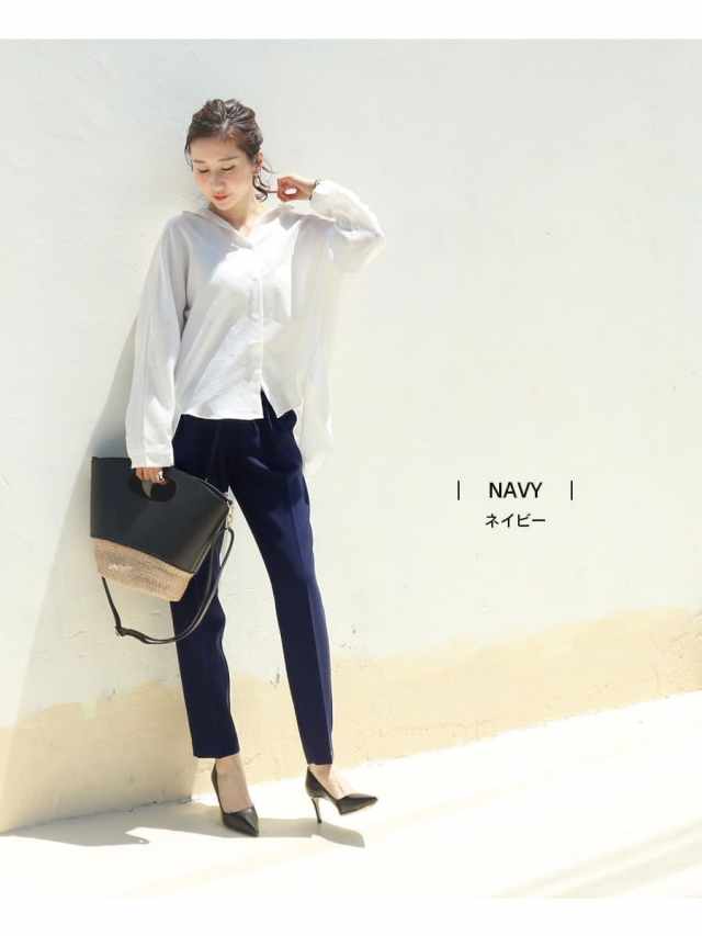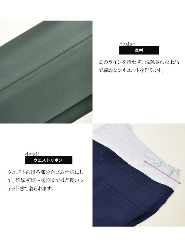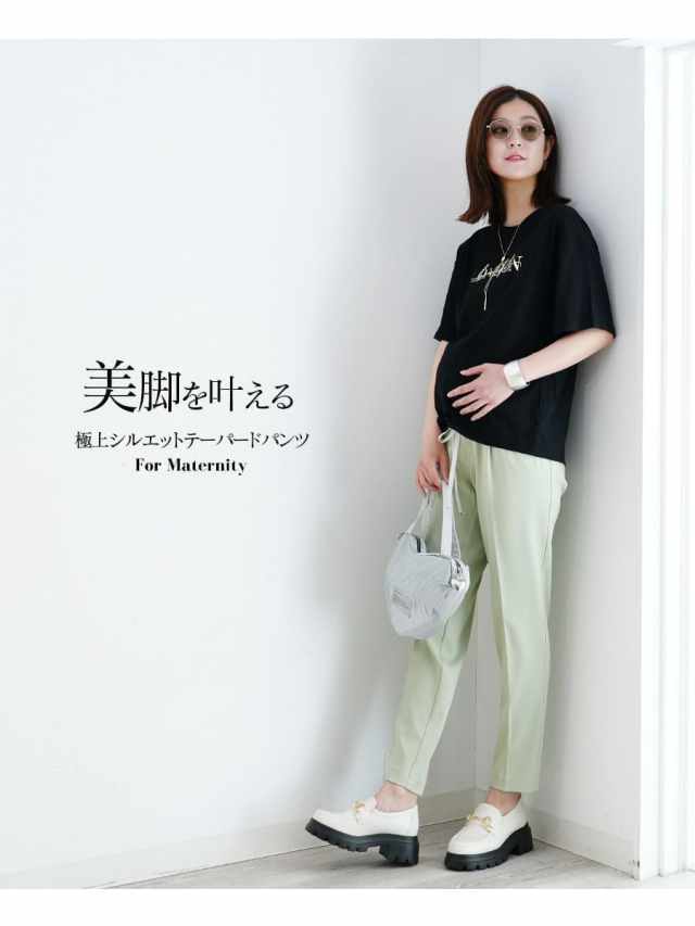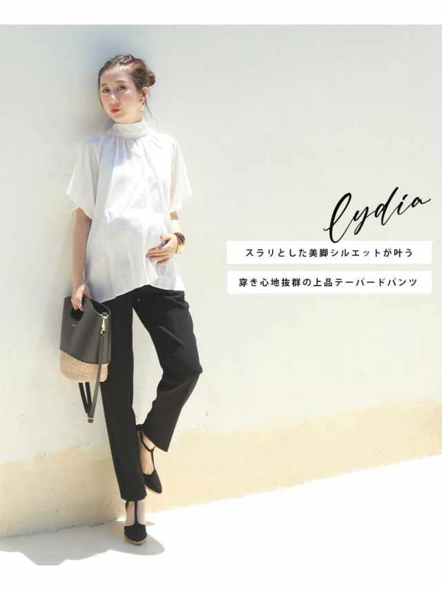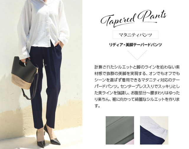 計算されたシルエットと脚のラインを拾わない素材感で抜群の美脚を実現する、オンでもオフでもシーンを選ばず着用できるマタニティ対応のテーパードパンツ。