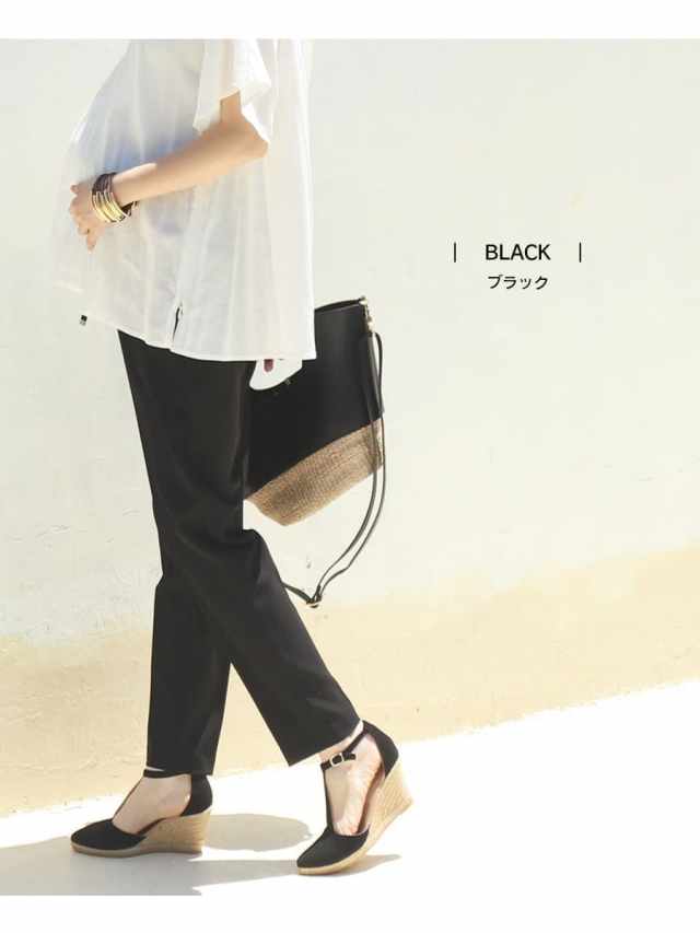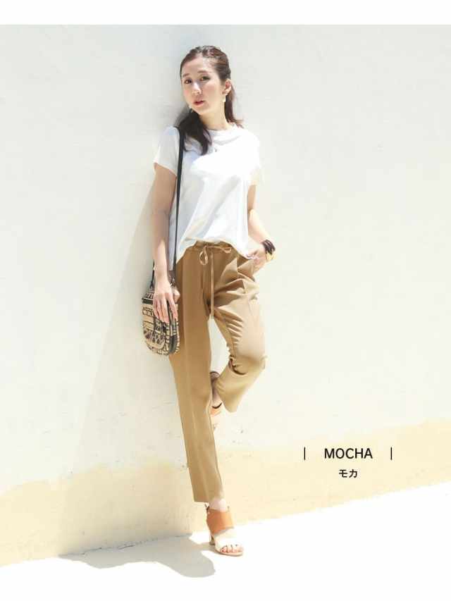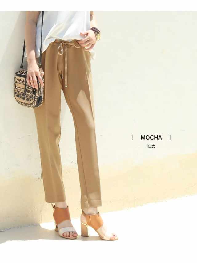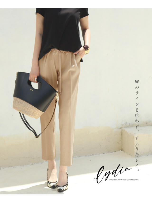 センタープレス入りでスッキリとした美ラインを強調し、お腹部分〜腰まわりはゆったり楽ちん、裾に向かって綺麗なシルエットを作ります。