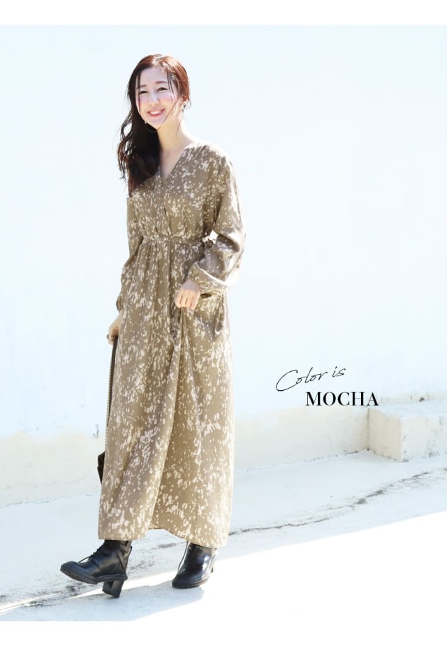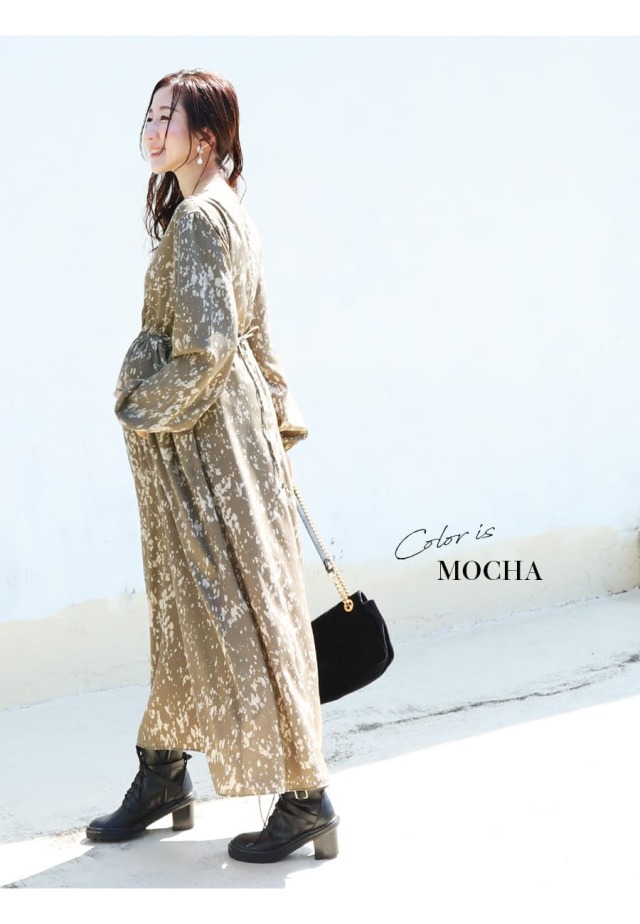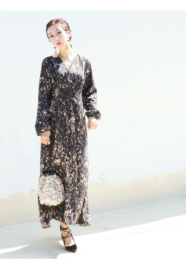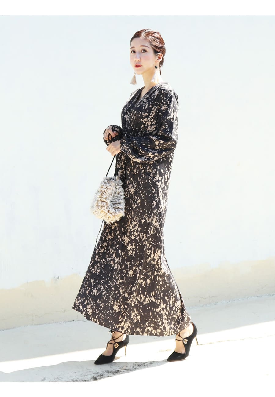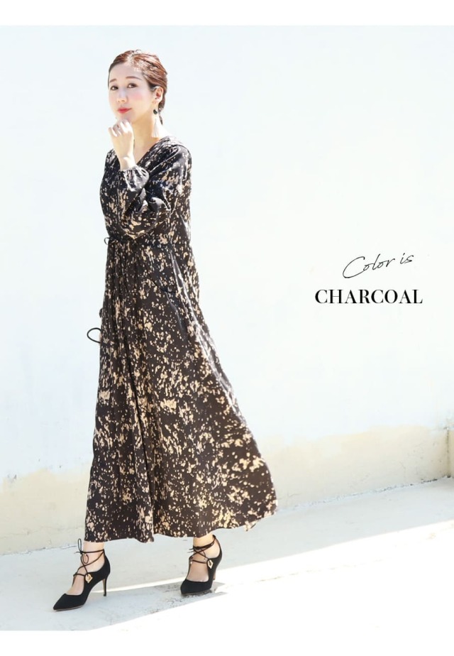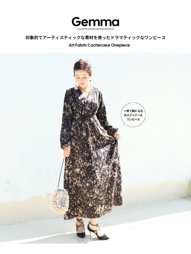 印象的でアーティスティック&滑らかな抜染プリント素材を使ったドラマティックなフレアーワンピースです。