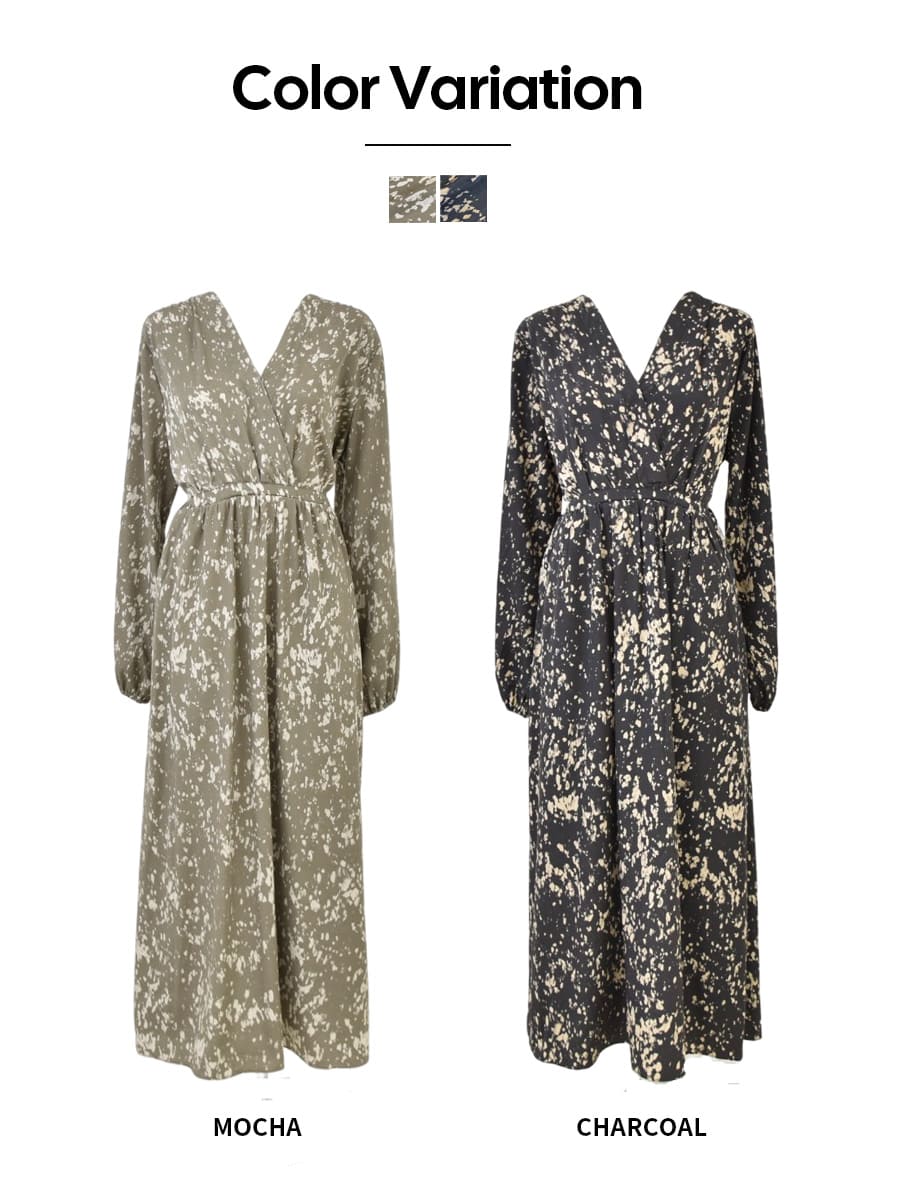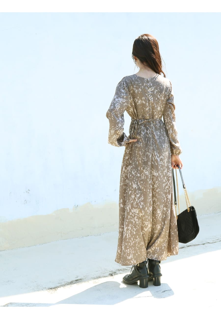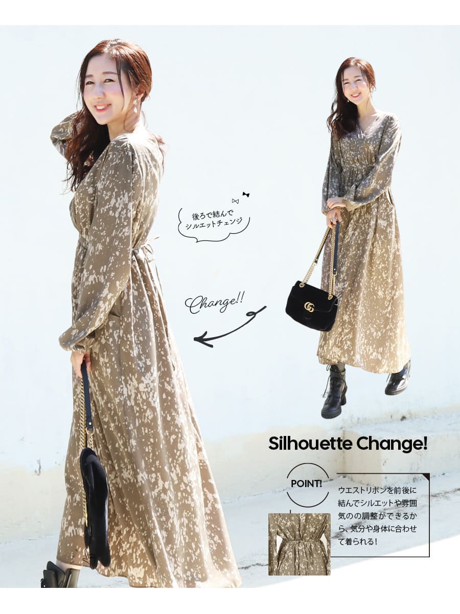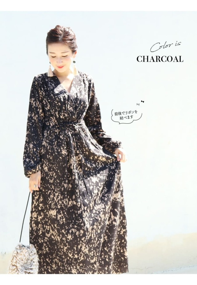 印象的でアーティスティック&滑らかな抜染プリント素材を使ったドラマティックなフレアーワンピースです。