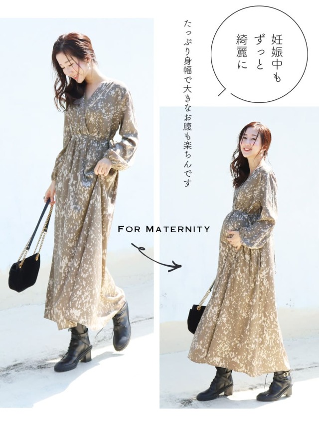 ふんわりしたシルエットをサラサラの軽い着心地で、マタニティ期の大きなお腹も楽ちん。