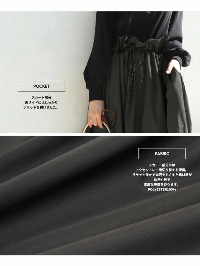 柔らかなカットソー素材のトップスに、ウエストのドローストリングデザインのスカートを合わせたデザインは、ウエストの調整るすることで、妊娠中のお腹はゆったりと、産後はきゅっと絞ることでスタイルアップも叶う優れもの。