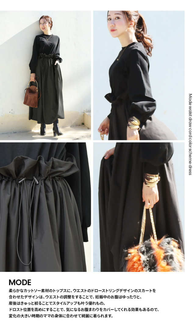 授乳服 授乳 マタニティ マタニティ 妊娠 出産 妊婦 妊婦服 産前産後 出産準備 入院準備 産院 妊娠初期 妊娠中期 妊娠後期 レディース ワンピース ワンピ ドッキング 重ね着風 授乳ケープ機能付き パフ袖 綿100% コットン ドローコード ドロスト ブラウジング コーデ お腹楽ちん 大きいサイズ 春 秋 冬 オールシーズン 大人可愛い Milktea ミルクティー ミルクティ
