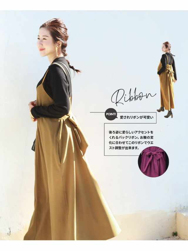 リボンでウエストを調整できるので、産前産後綺麗なシルエットが叶います。