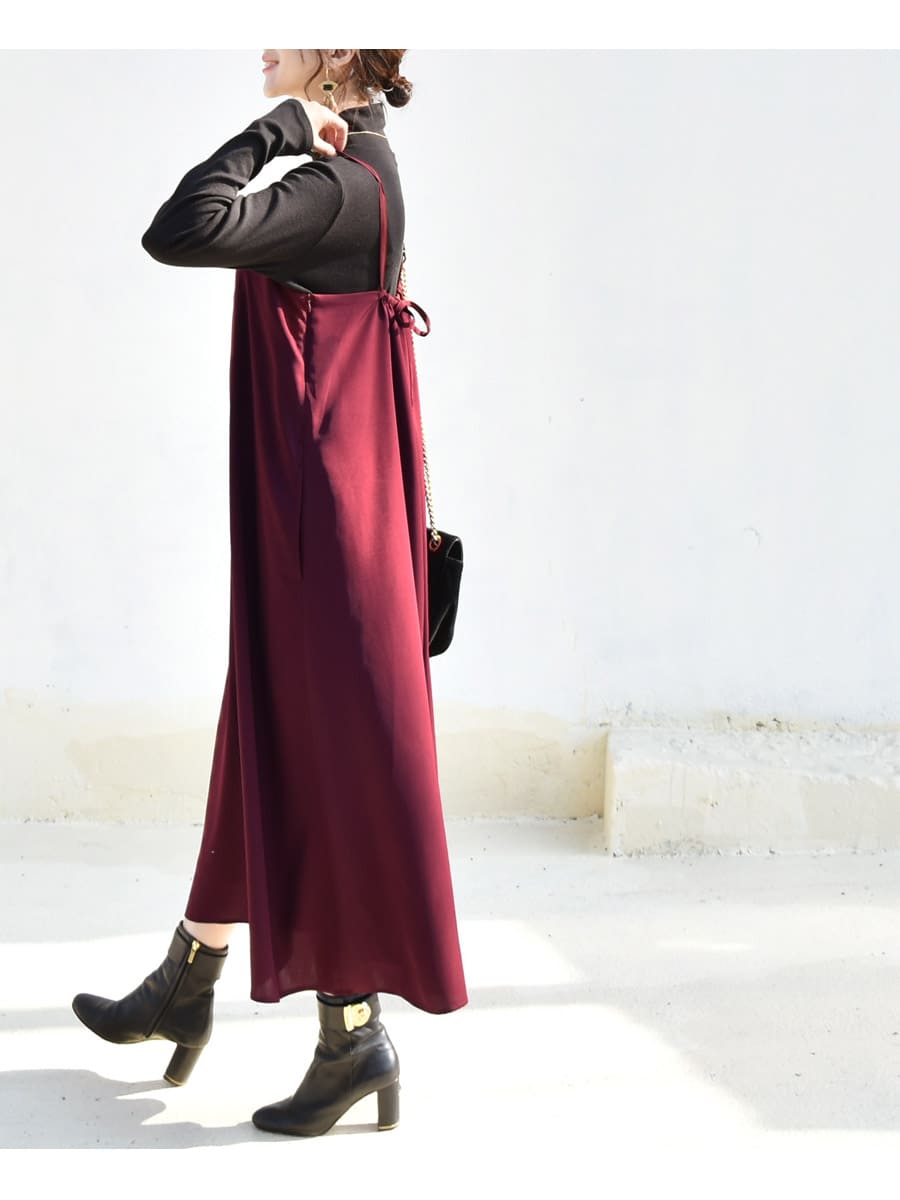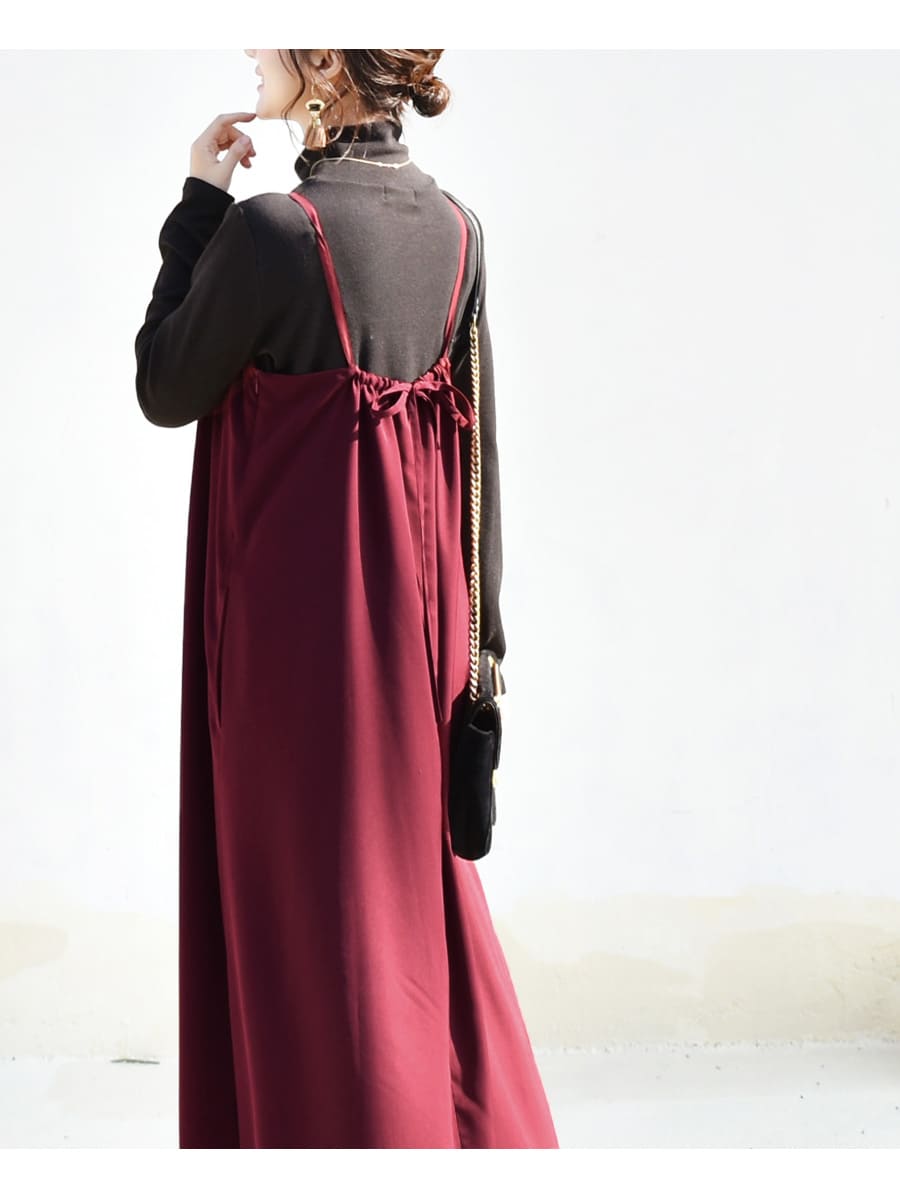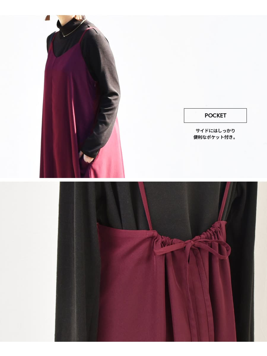 肩紐〜後ろで結ぶリボンデザインでコーデや身長にあわせて着丈の調整ができます。