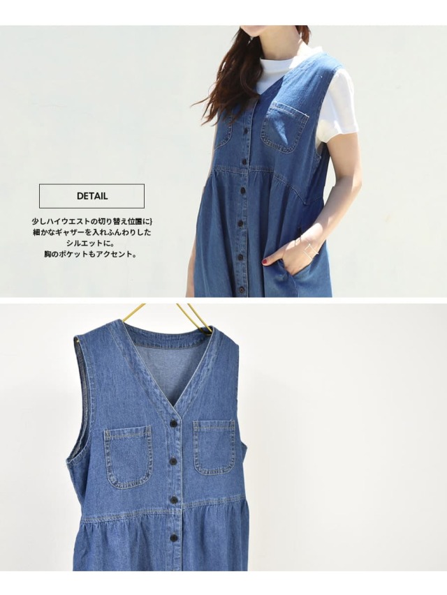 ナチュラルで優しい雰囲気のデニム前開きチュニック&ワンピースです。