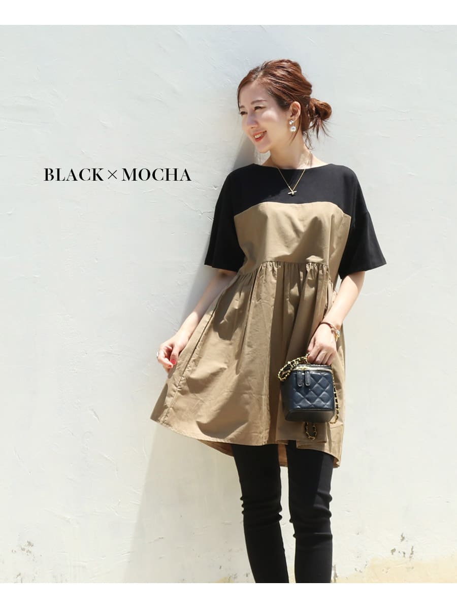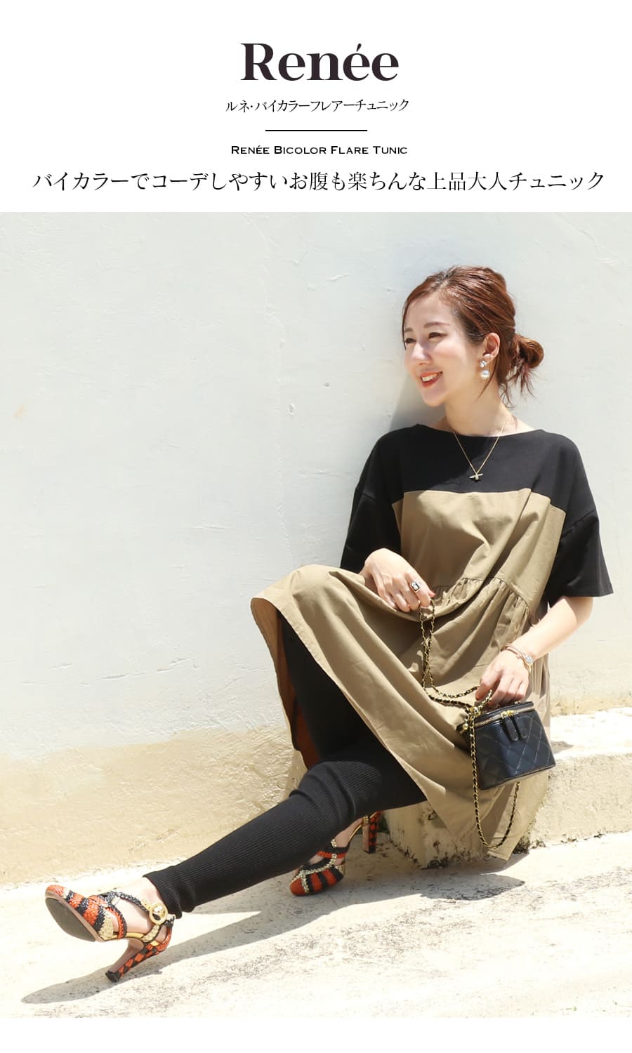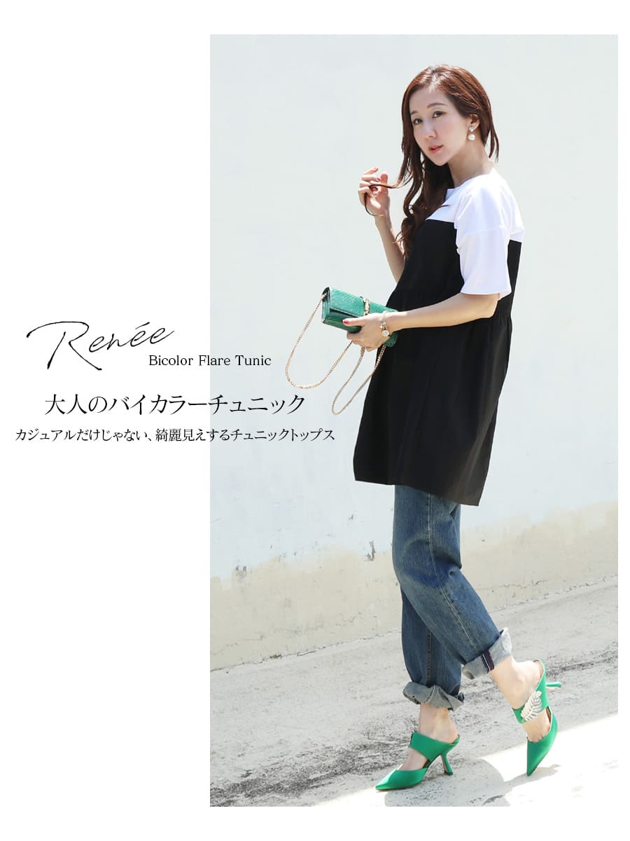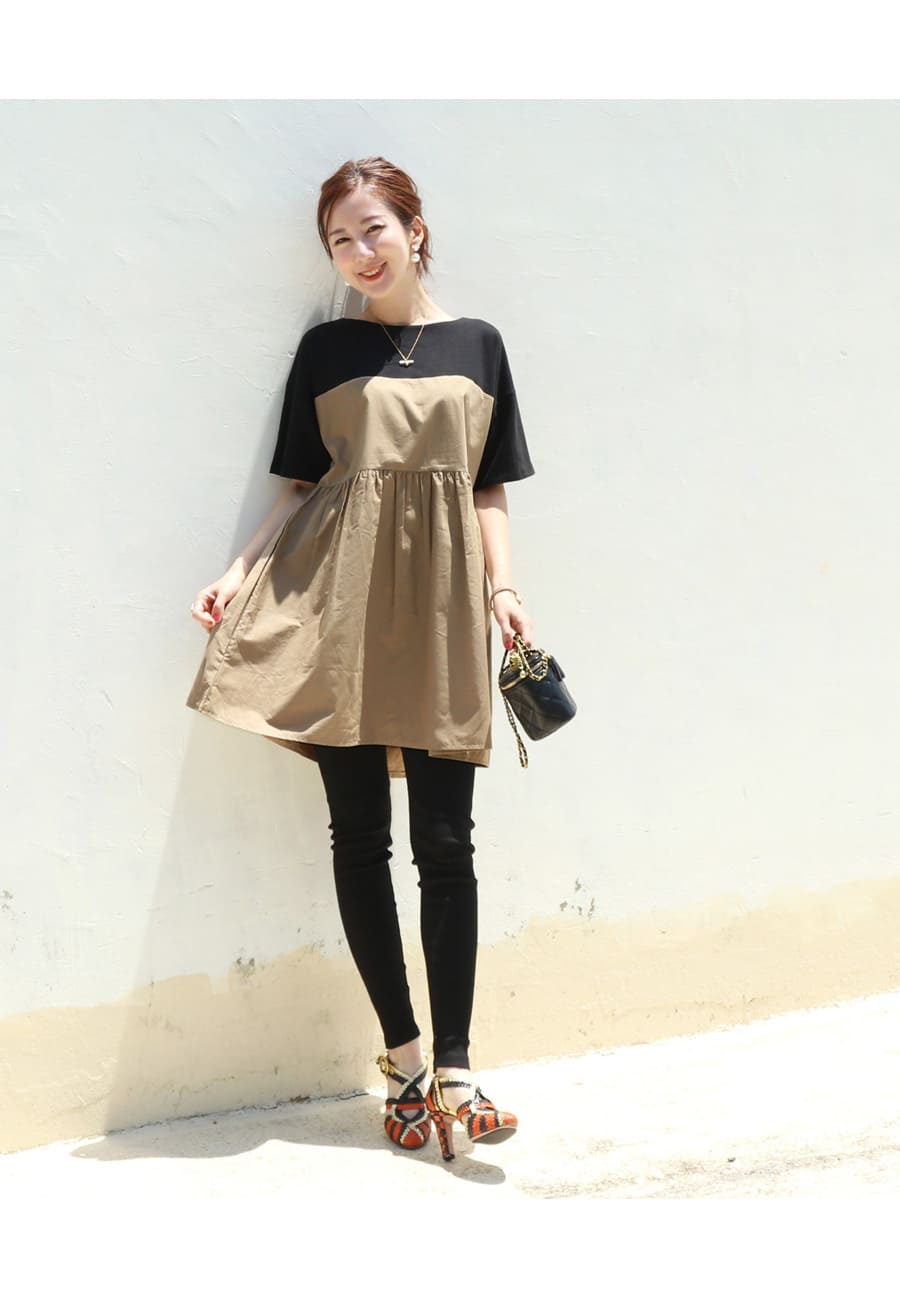 バイカラーでコーデしやすい、お腹も楽ちんな上品大人チュニック。