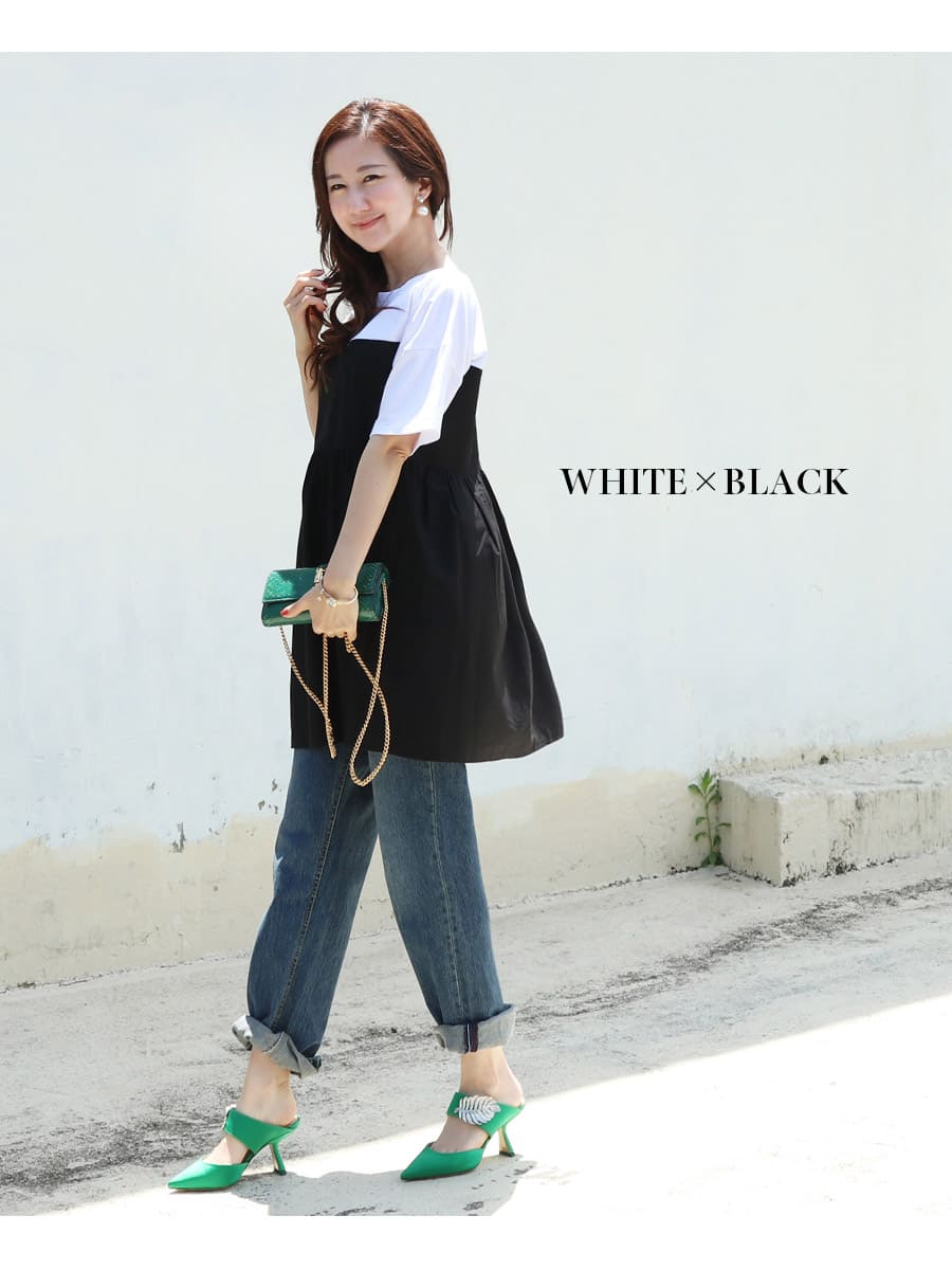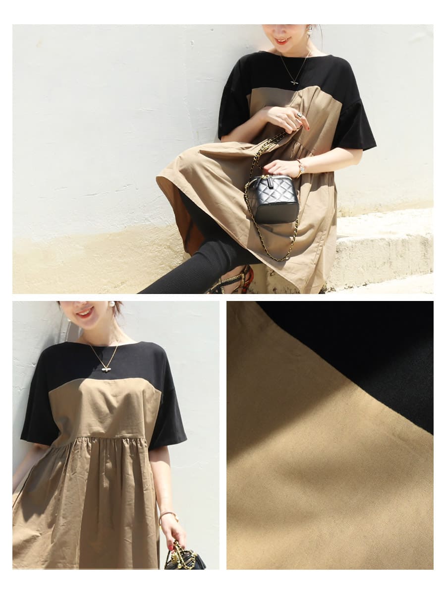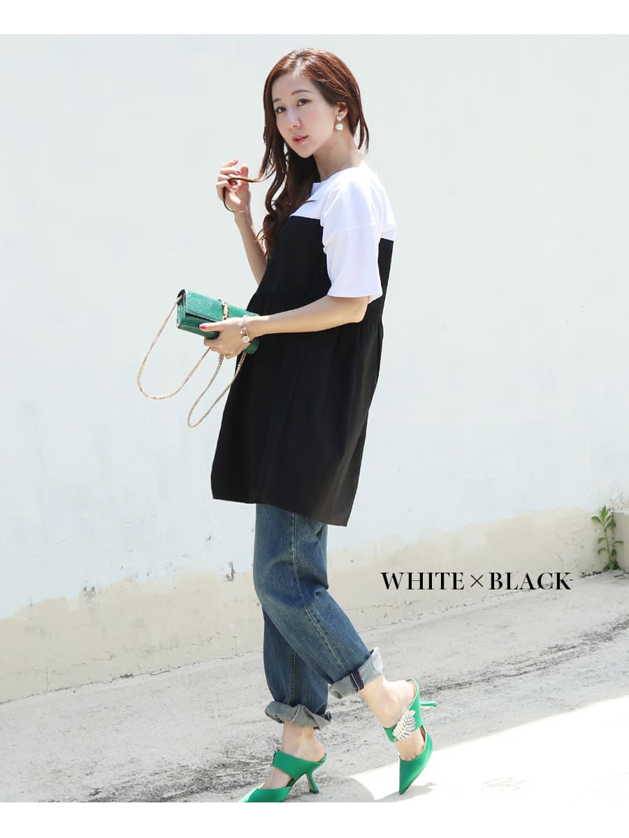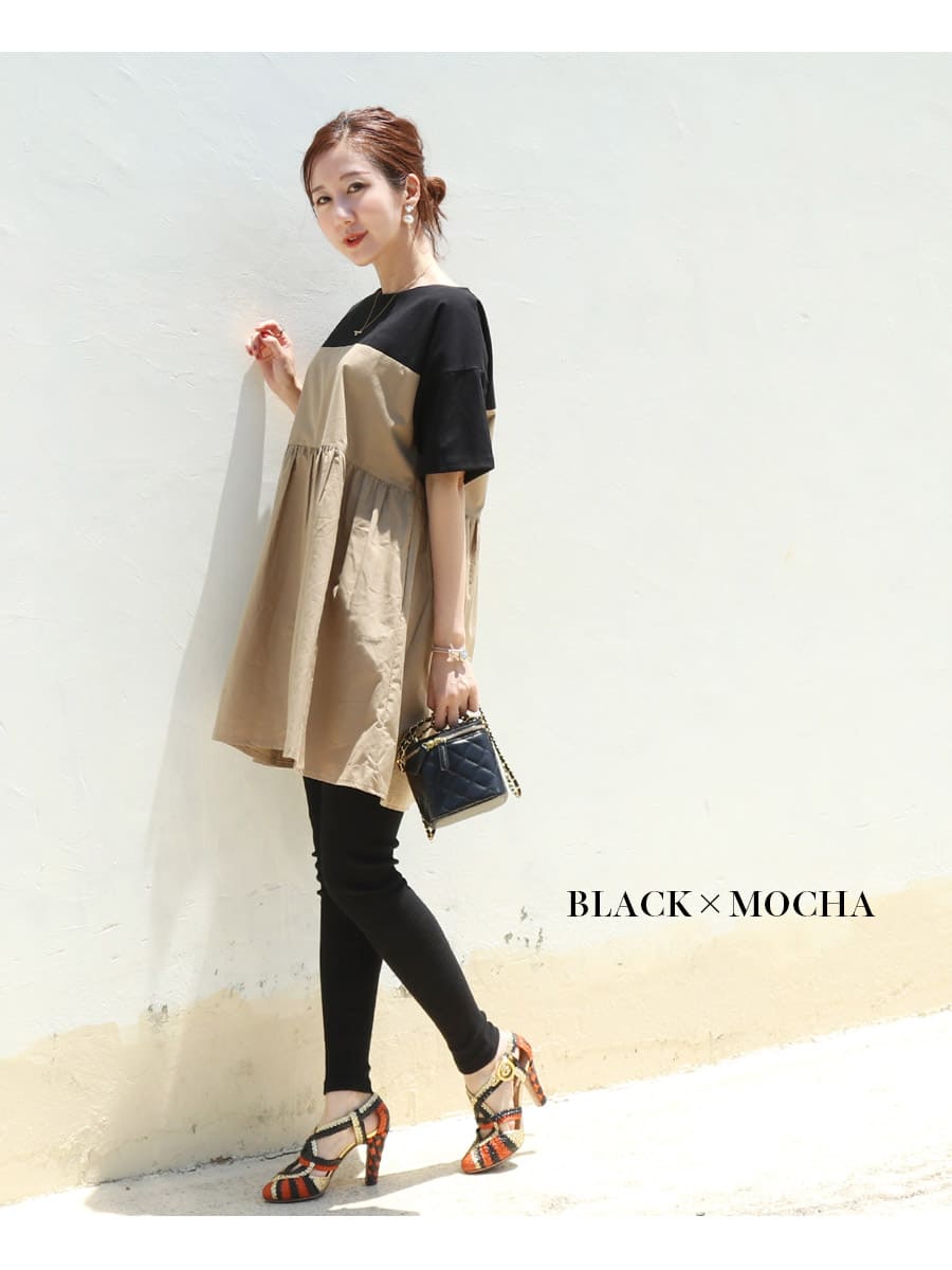 バイカラーでコーデしやすい、お腹も楽ちんな上品大人チュニック。