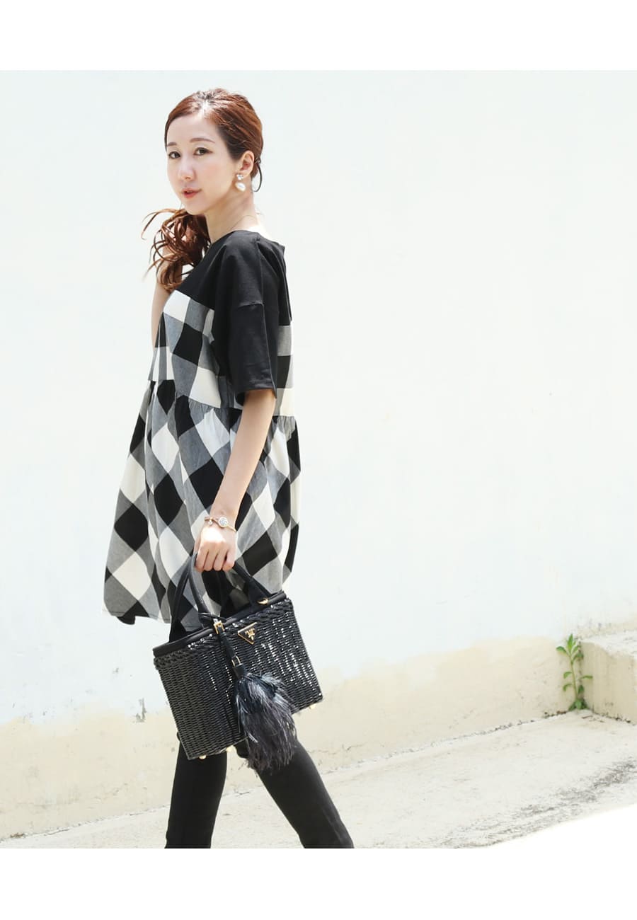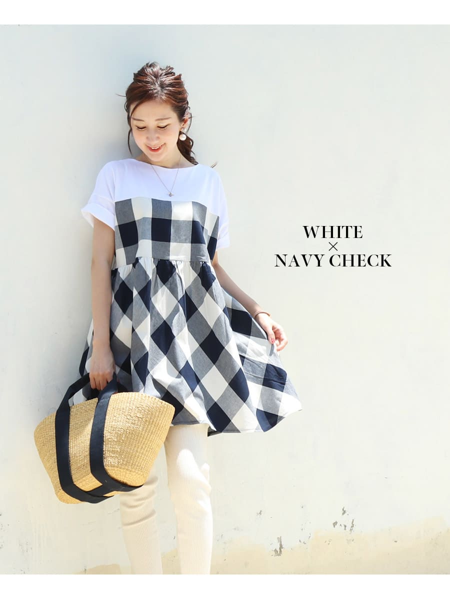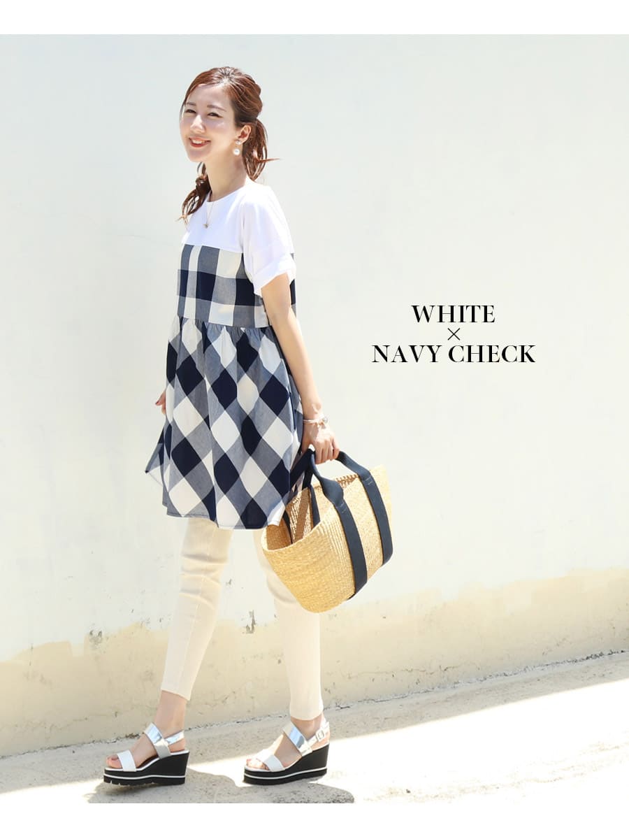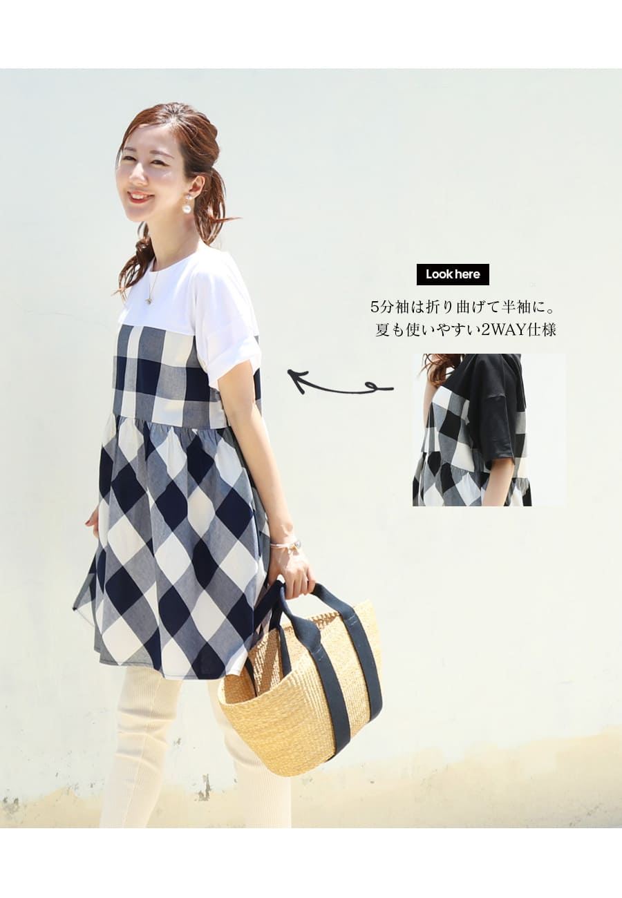 バイカラーでコーデしやすい、お腹も楽ちんな上品大人チュニック。