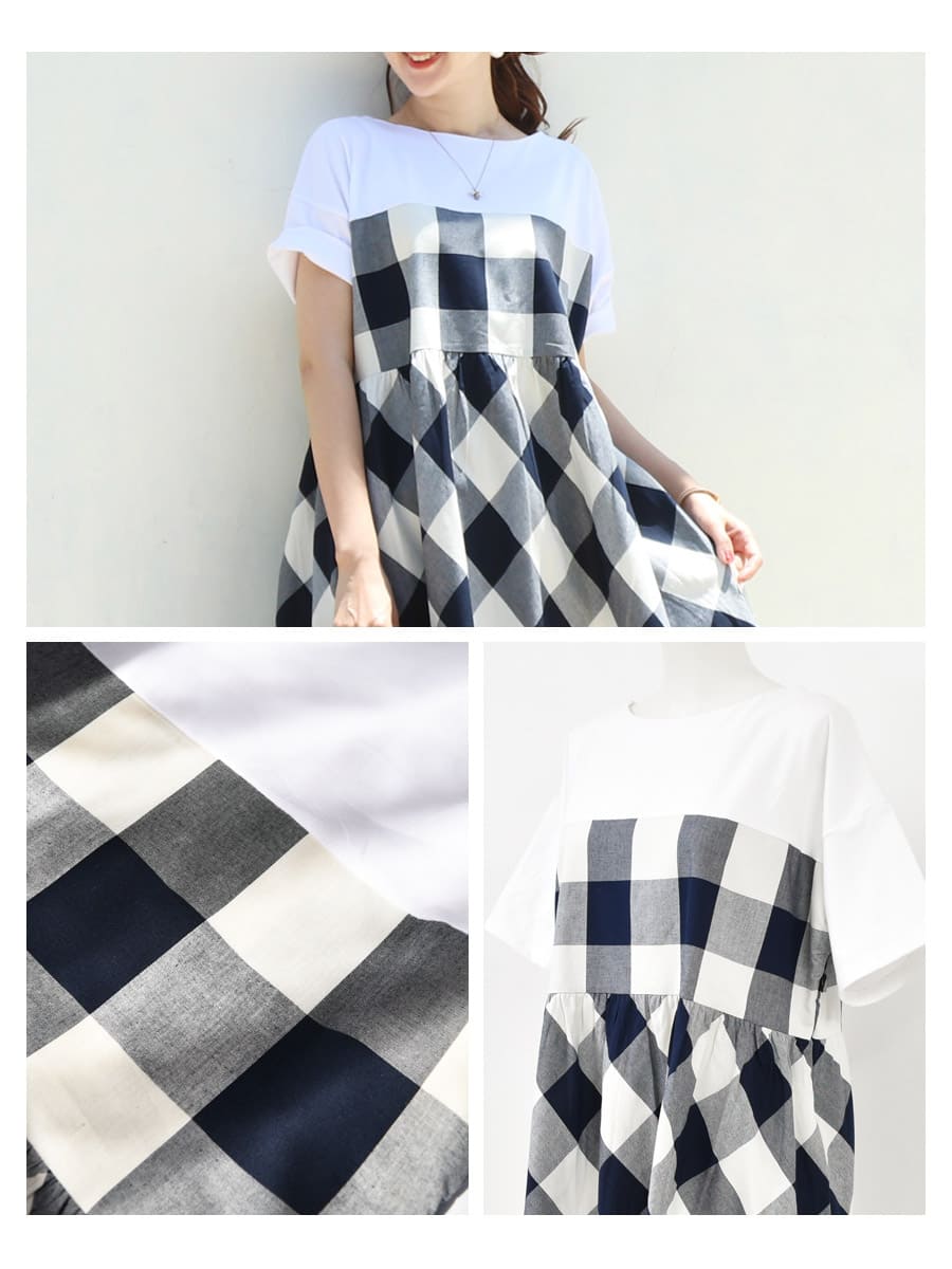 身頃の上部分はシンプルなTシャツデザイン+下部分は切り替え部分にギャザーを入れふんわり広がるシルエットに。