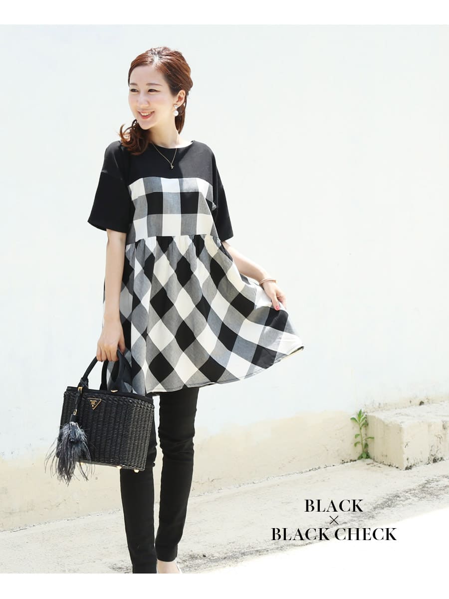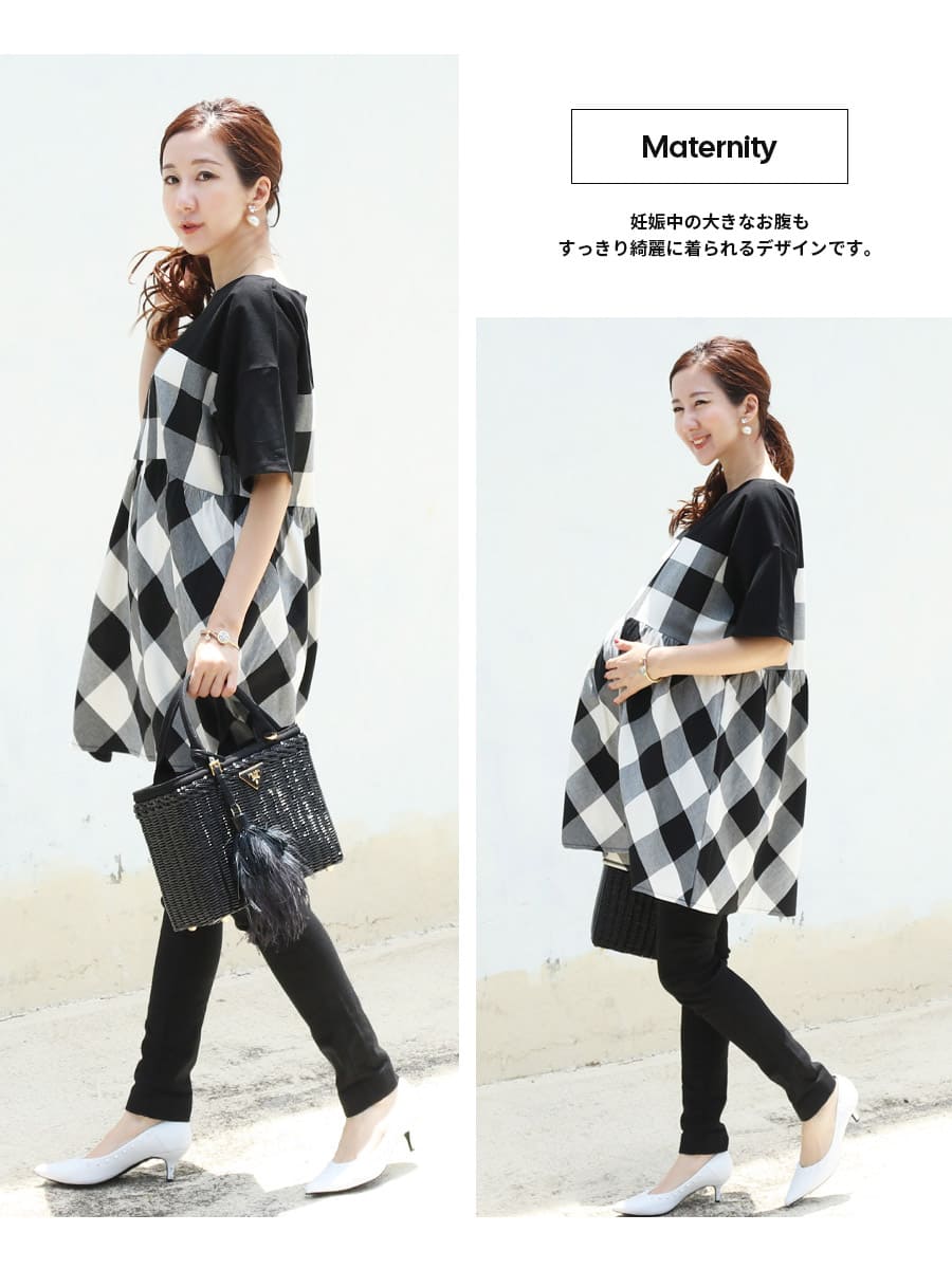 ふんわり広がるシルエットが大きなお腹も綺麗にみせてくれるので、妊娠中〜産後まで綺麗にきられます。