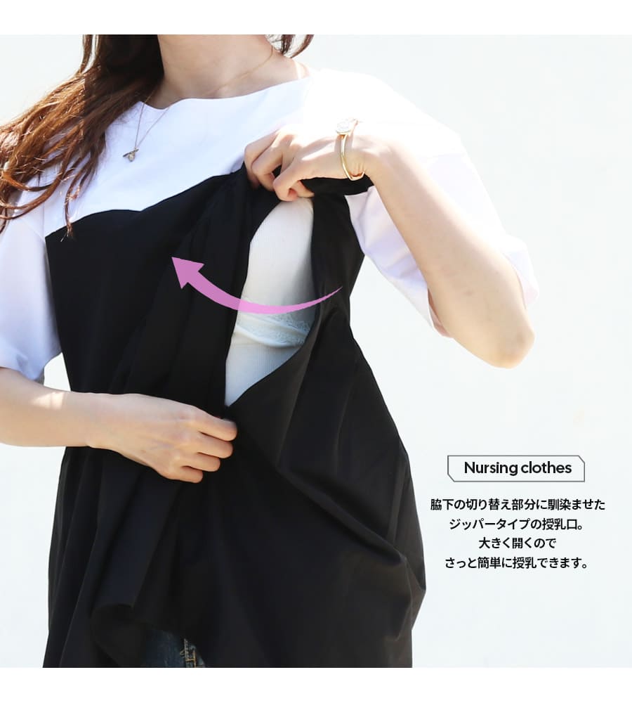 閉じてしまえば授乳服には見えないデザインなので、妊娠初期〜妊娠後期〜産後まで長くお使いいただけます。