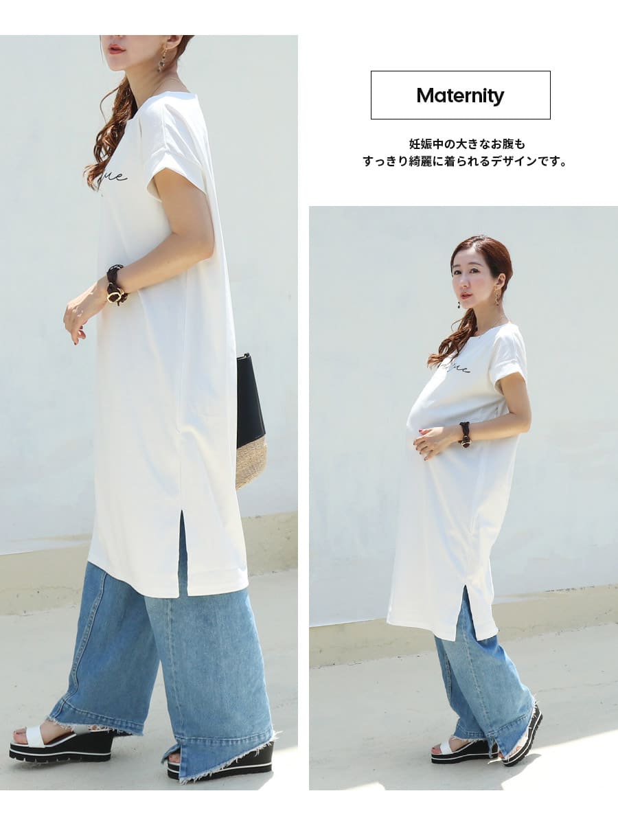 授乳服 授乳 マタニティ マタニティウエア 妊娠 出産 妊婦 妊婦服 産前産後 出産準備 入院準備 産院 レディース トップス Tシャツ ロングワンピース チュニック カジュアル 春 夏 秋 オールシーズン 半袖 フレンチスリーブ 大人可愛い Milktea ミルクティー ミルクティ