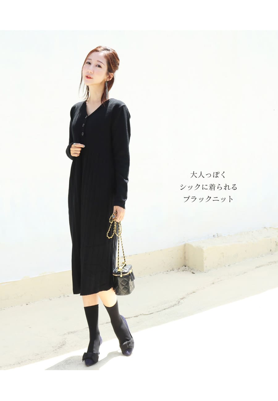 本当に手触りの良いニットで作ったワンピースは、綺麗なシルエットが自慢の一枚。