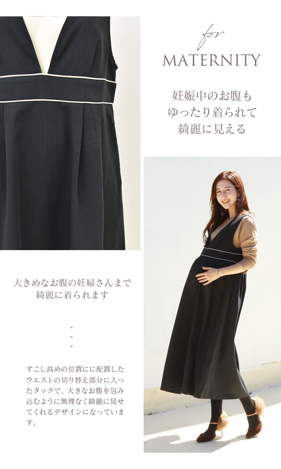 ・妊娠中〜産後、その先も時期を問わず長く綺麗に着られるデザイン。