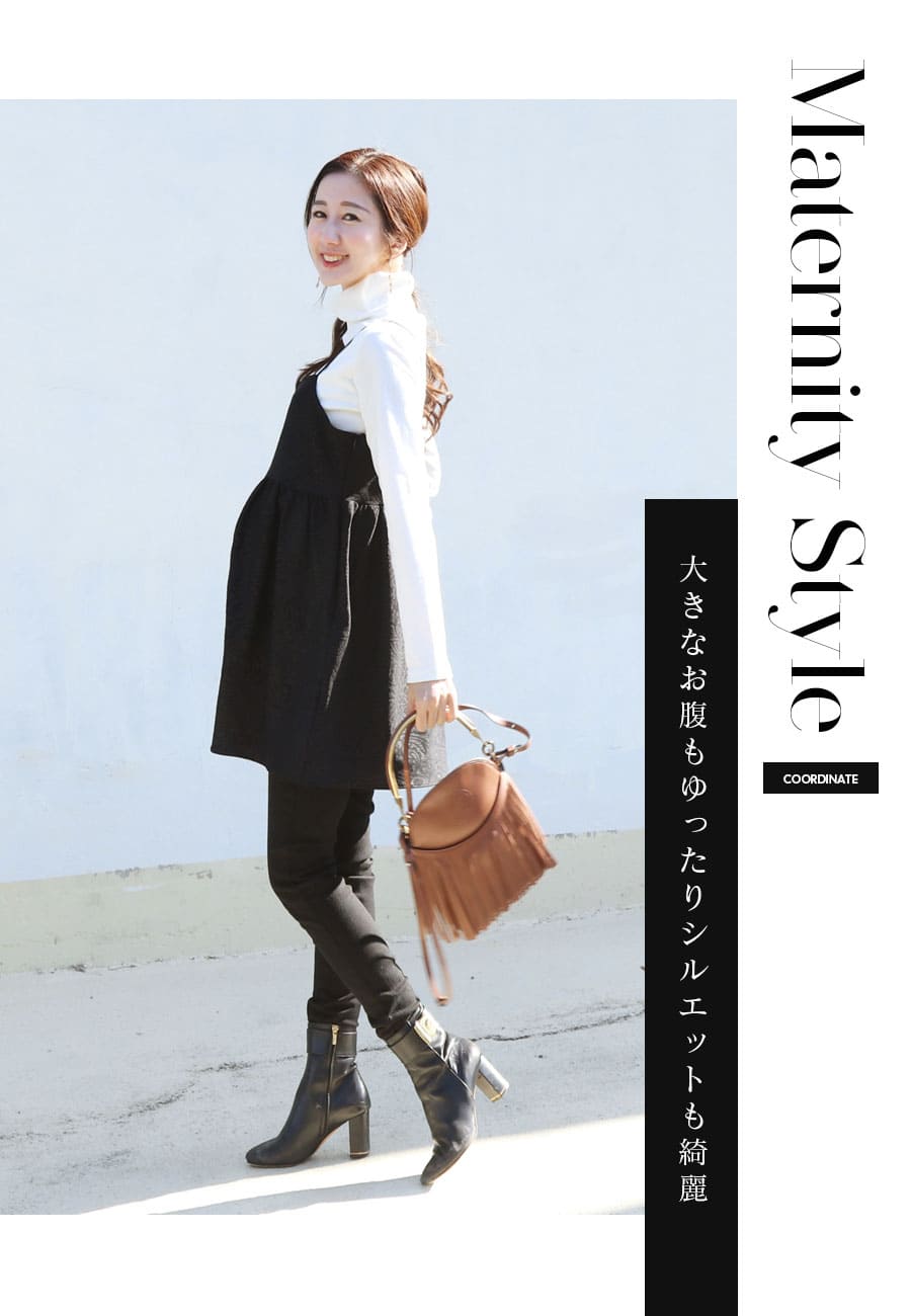 胸下から広がるペプラムデザインが女性らしく、妊娠中の大きなお腹はもちろん、腰周りの体型カバーにも◎。