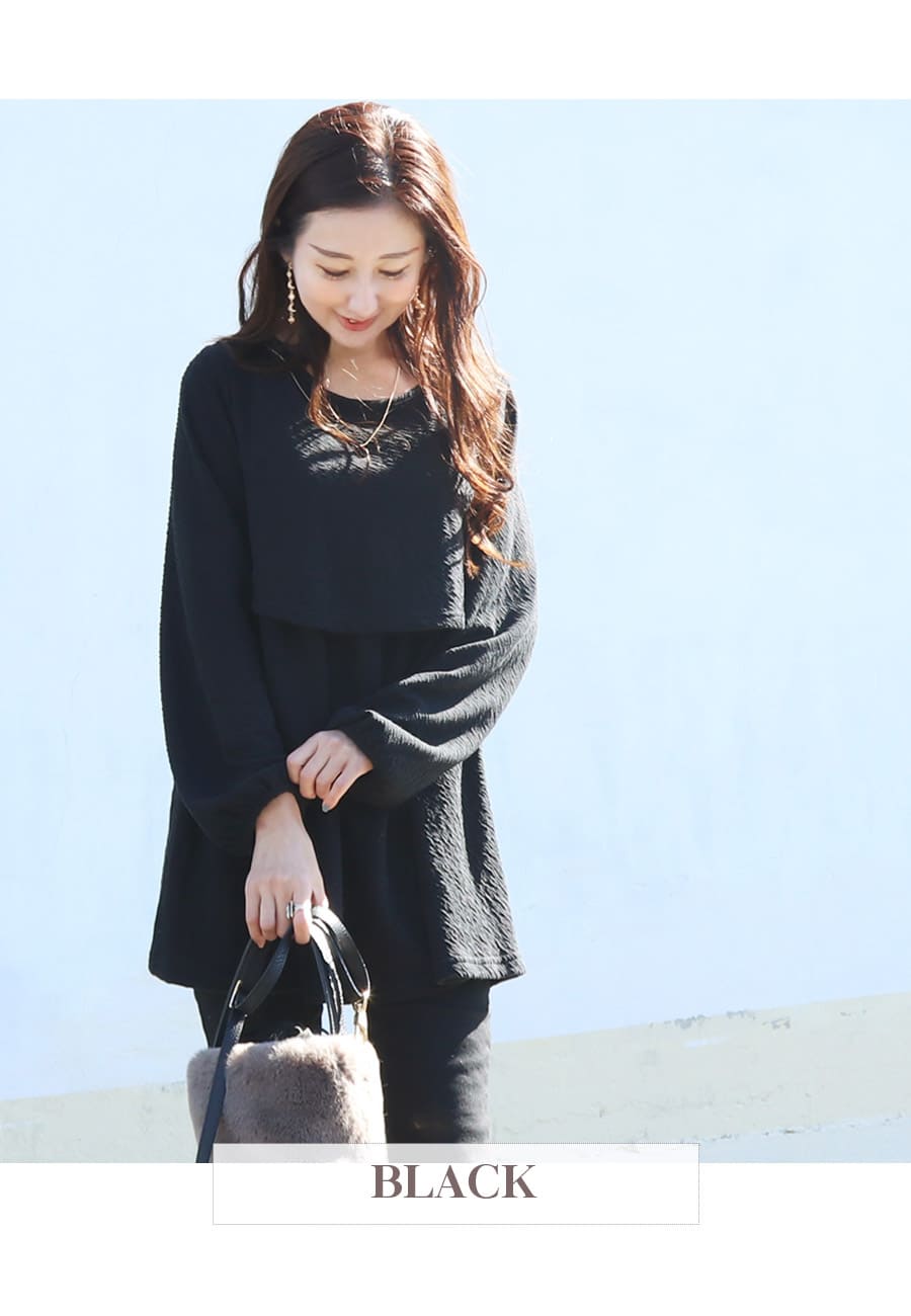 商品カテゴリ:授乳服 授乳 マタニティ マタニティウエア 妊娠 出産 妊婦 妊婦服 産前産後 出産準備 入院準備 産院 妊娠初期 妊娠中期 妊娠後期 レディース トップス チュニック フレアーデザイン ペプラム バックリボン 授乳ケープ 授乳口付き 防寒 大きいサイズ 春 夏 秋 冬 オールシーズン 大人可愛い Milktea ミルクティー ミルクティ