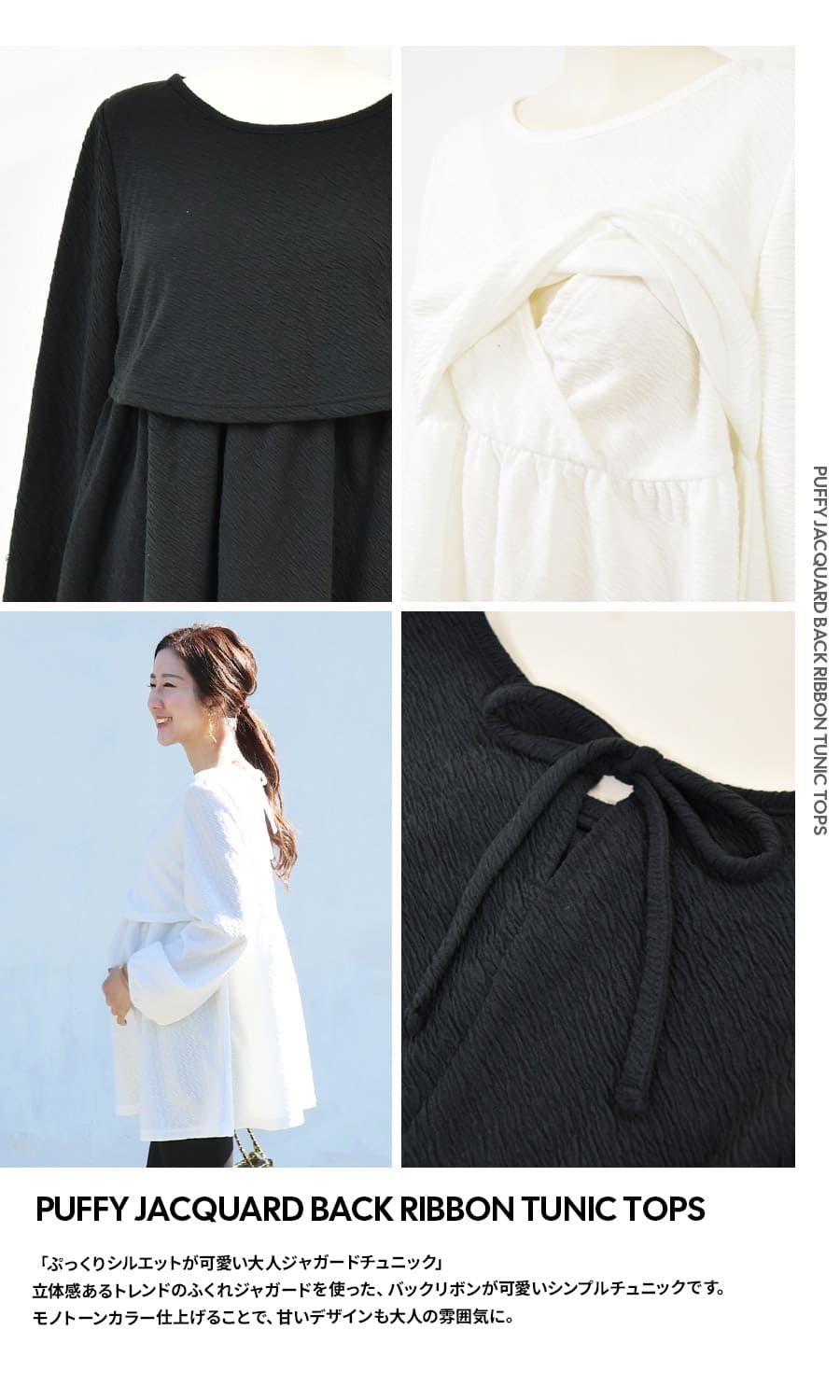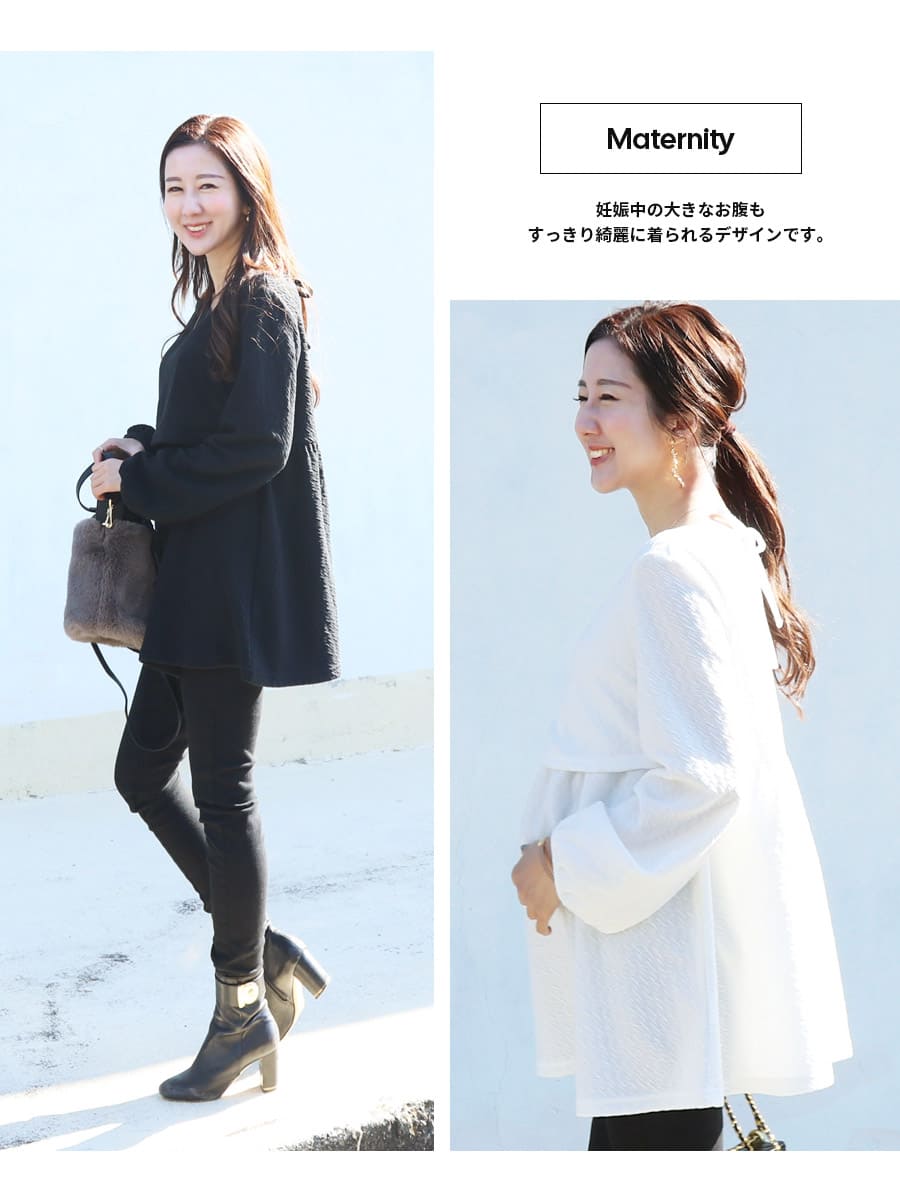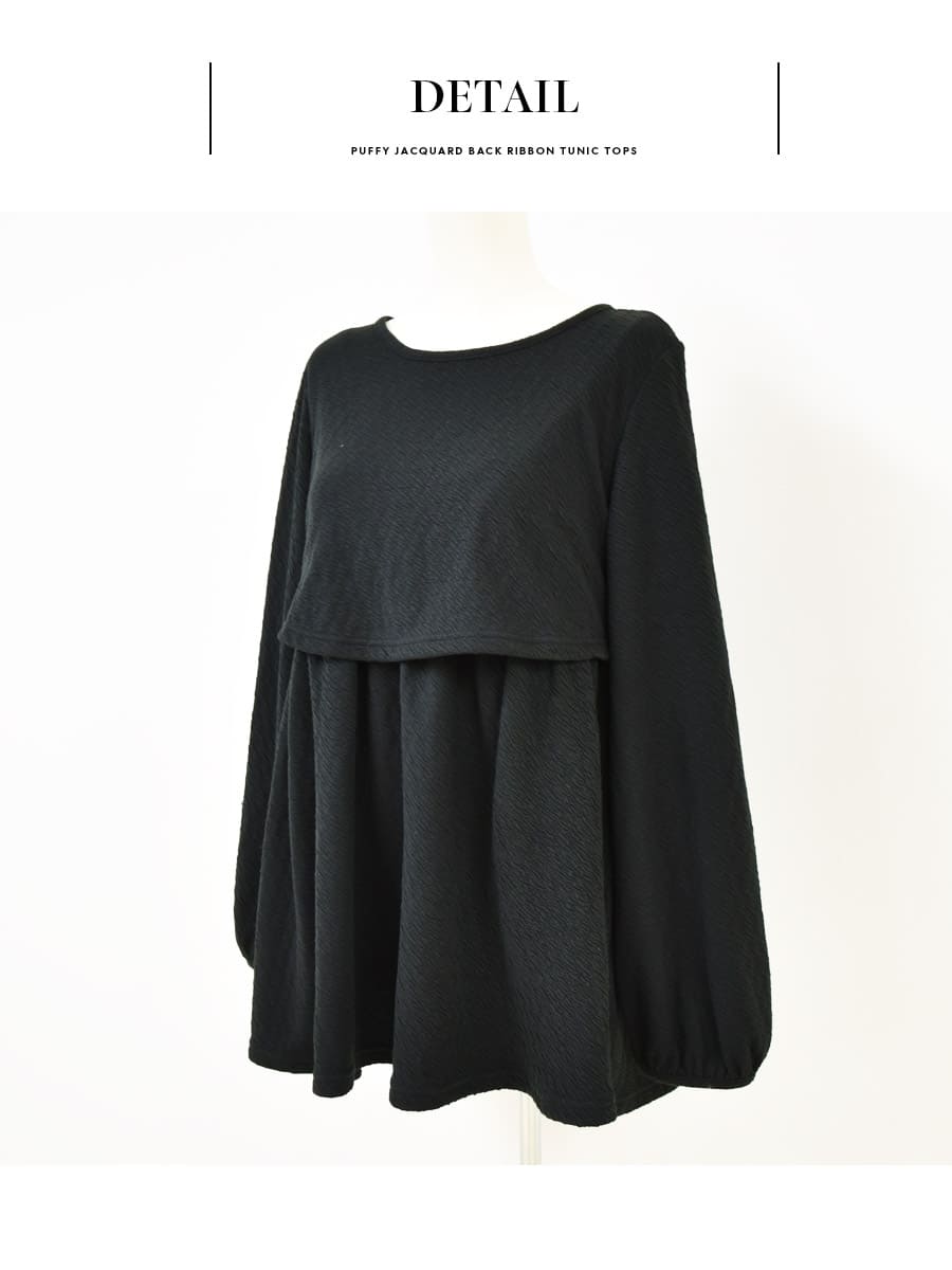 <授乳服・マタニティウエア>ふくれジャガードバックリボンチュニックトップス