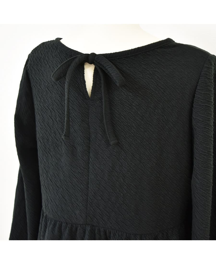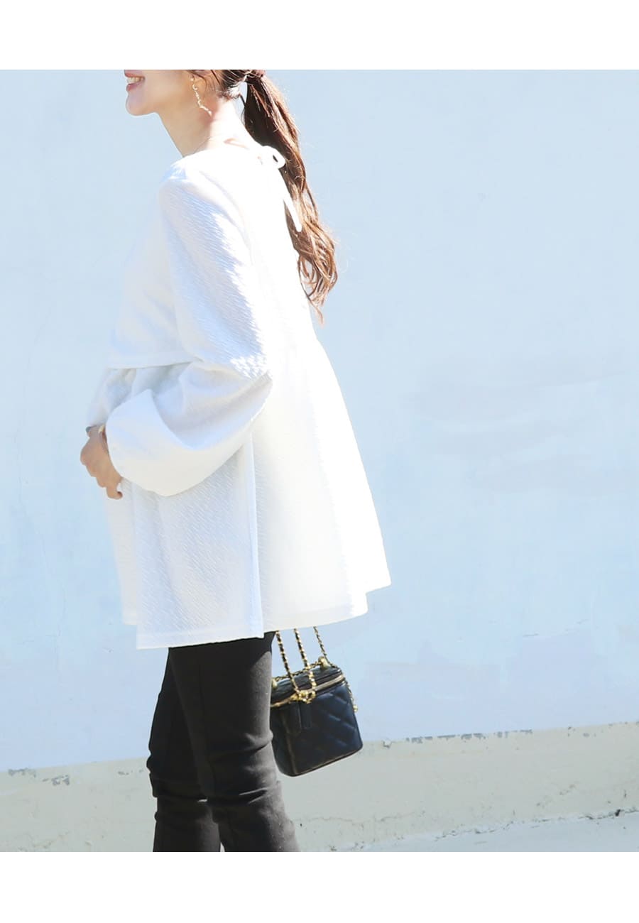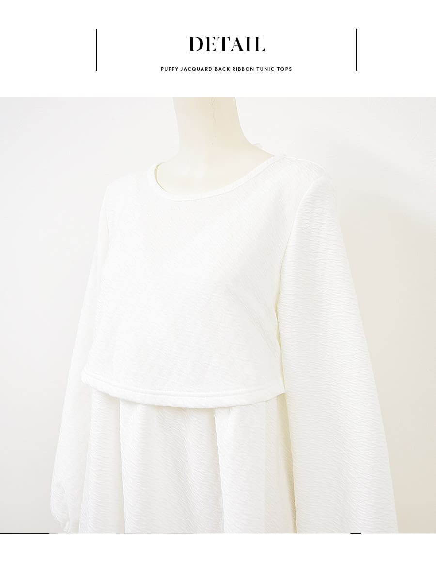 立体感あるトレンドのふくれジャガードを使った、バックリボンが可愛いシンプルチュニックです。