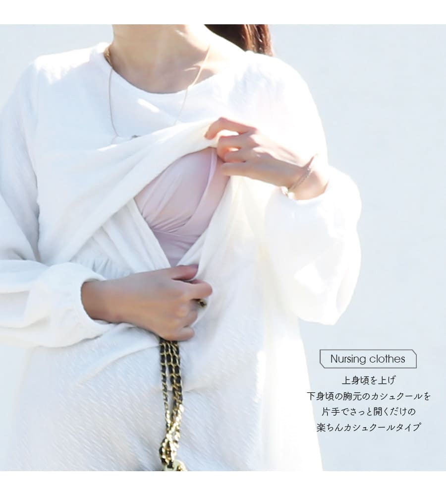 手間いらずで授乳でき、上身頃が授乳ケープがわりの目隠しにもなるので、お出かけ先での授乳も簡単です。