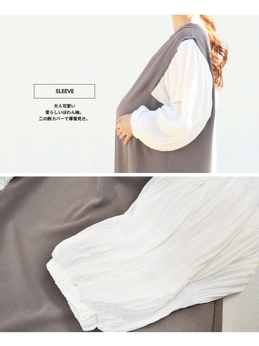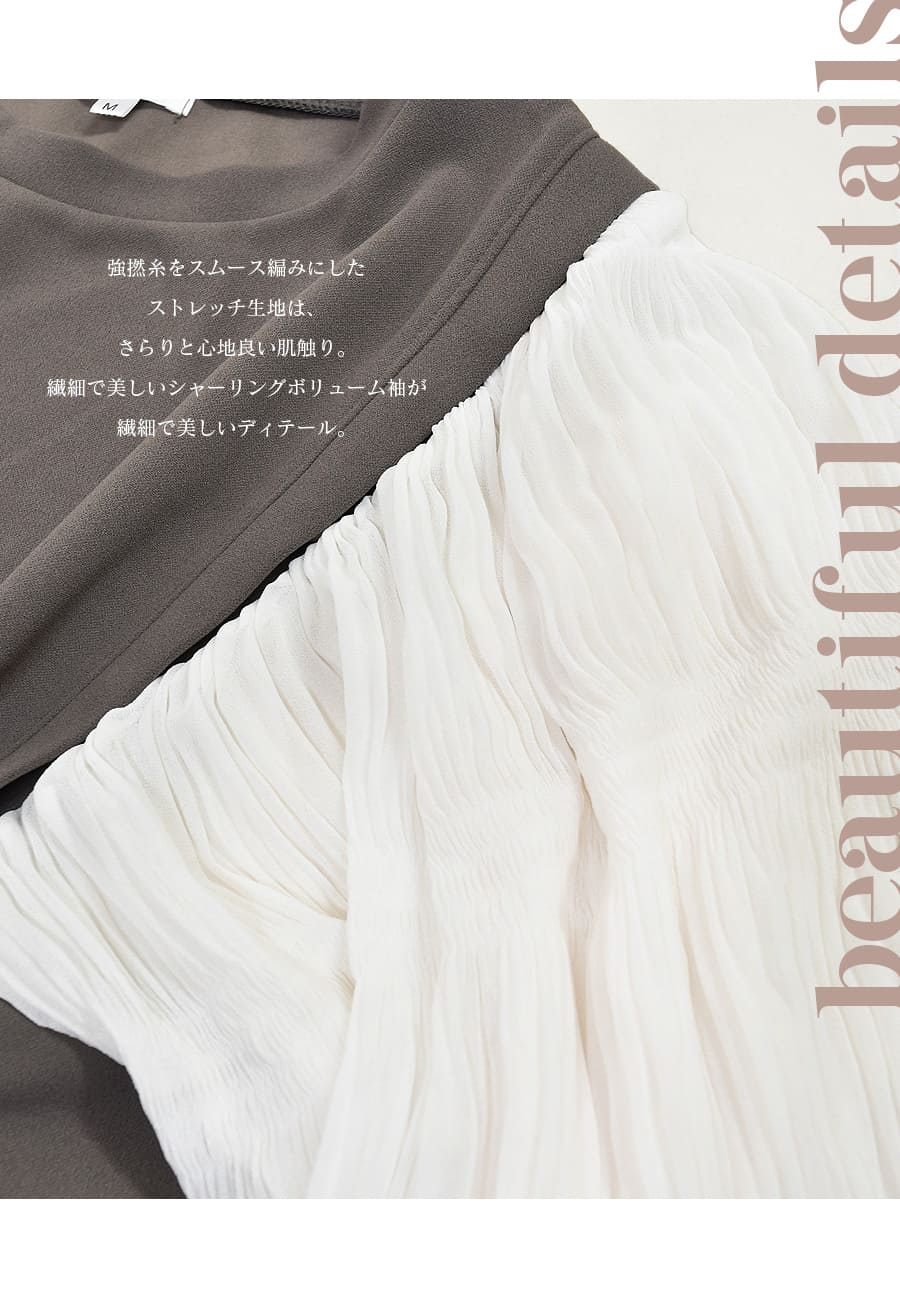 最大の特徴は繊細で美しいシャーリングボリューム袖。ロマンティックで優雅なシルエットが本当に綺麗。