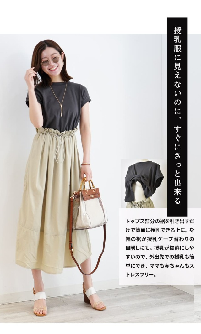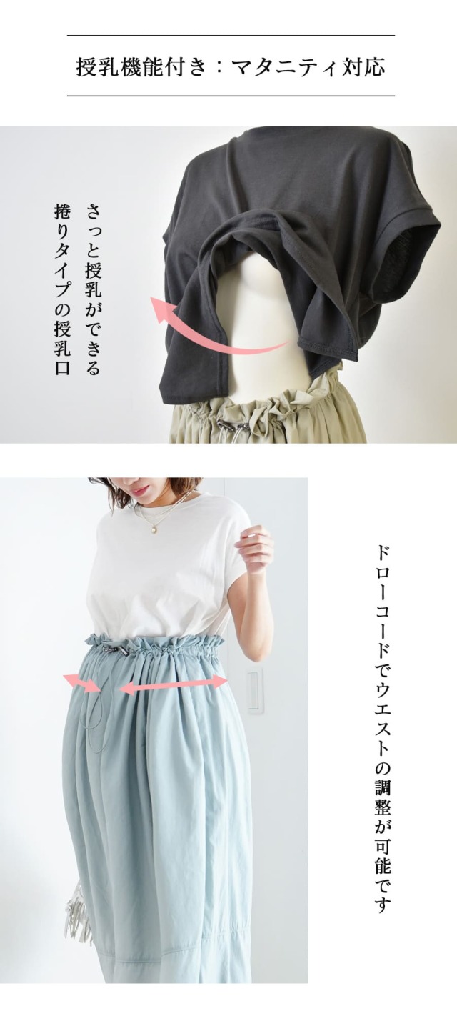商品カテゴリ:授乳服 授乳 マタニティ マタニティウエア 妊娠 出産 妊婦 妊婦服 産前産後 出産準備 入院準備 産院 妊娠初期 妊娠中期 妊娠後期 レディース ワンピース ドッキングワンピース 重ね着風ワンピース トップス 授乳Tシャツ 授乳カットソー フレンチスリーブ マタニティトップス マタニティTシャツ マタニティカットソー 半袖 フレンチスリーブ ウエストゴム 妊婦服 お腹調整OK 授乳OK 春 夏 オールシーズン 大人可愛い Milktea ミルクティー ミルクティ マタニティ服と授乳服の通販なら【公式】Milk teaオンラインショップ