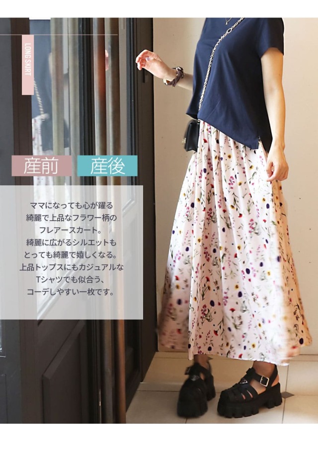 商品カテゴリ:授乳服 授乳 マタニティ マタニティ 妊娠 出産 妊婦 妊婦服 産前産後 出産準備 入院準備 産院 妊娠初期 妊娠中期 妊娠後期 レディース スカート ロングスカート フレアースカート 花柄 フラワー マタニティボトムス 産後スカート マタニティスカート 産前産後対応 産後OK 妊婦服 春 夏 秋 冬 オールシーズン 大人可愛い Milktea ミルクティー ミルクティ マタニティ服と授乳服の通販なら【公式】Milk teaオンラインショップ
