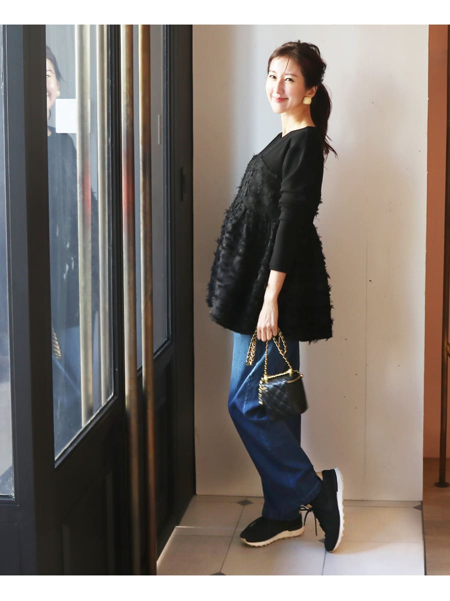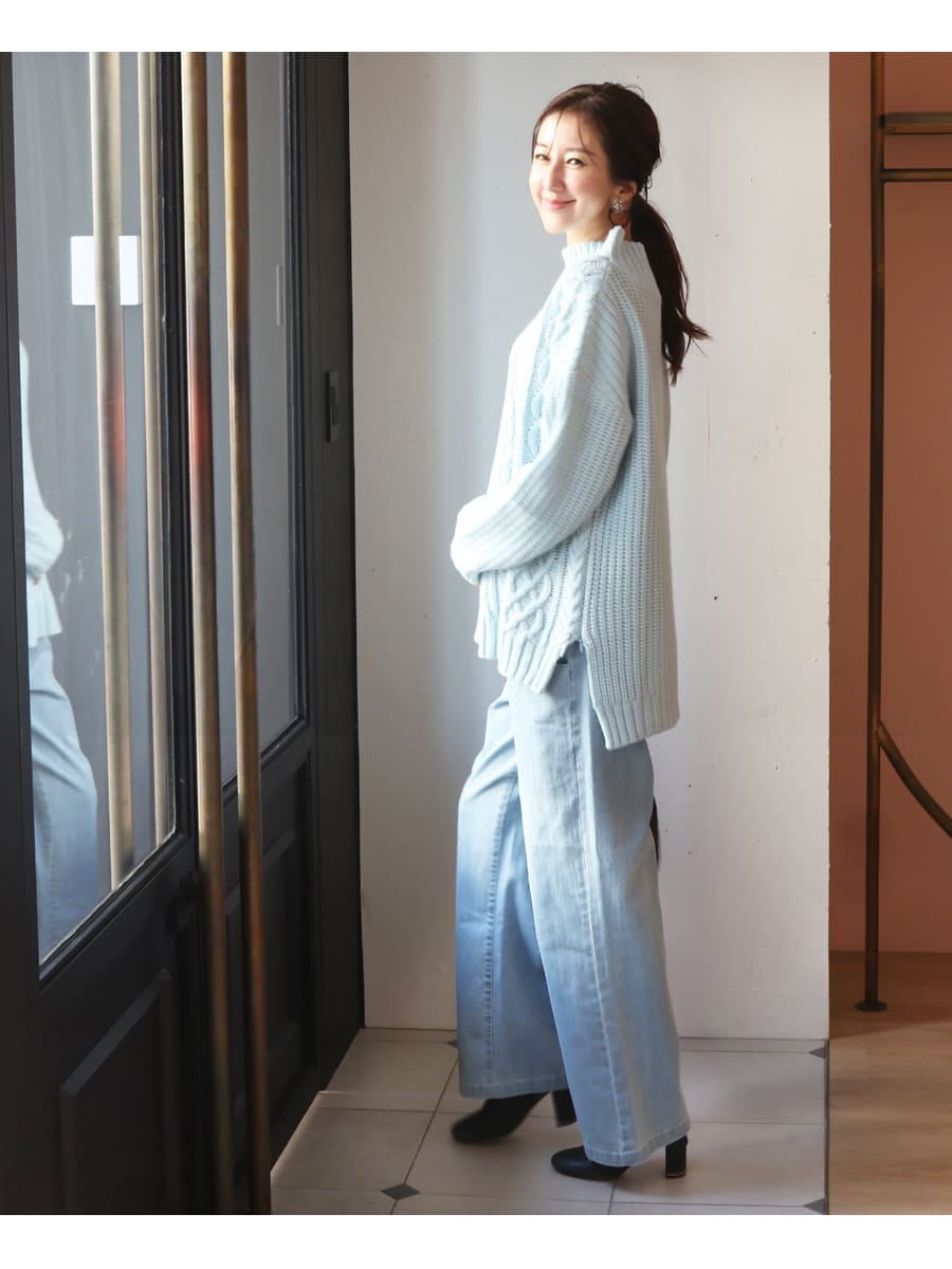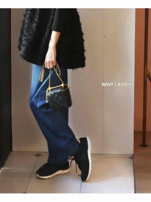 柔らかなデニム素材が楽な履き心地で、ストレートラインがスタイルアップを実現してくれる大人のワイドパンツ。