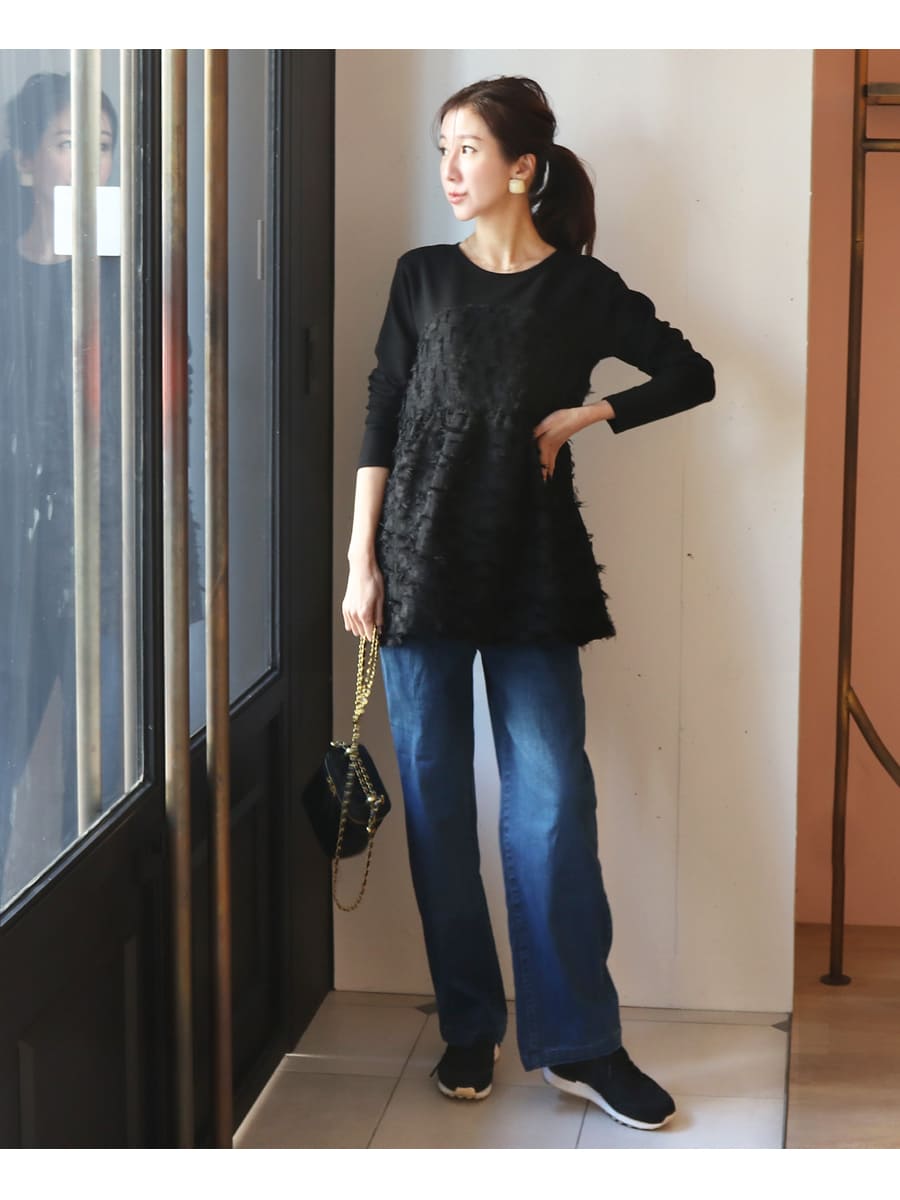 ストレートのラインがスタイリッシュな印象を与え、カジュアルにもきれいめにも使いやすく着回し力抜群。